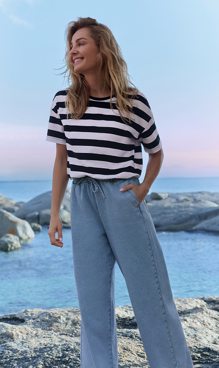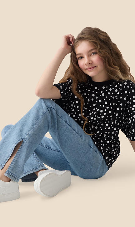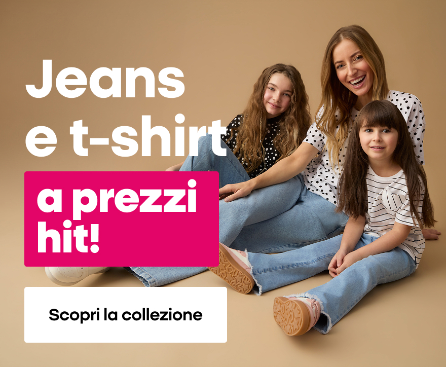 Scegli un outfit che ti farà sentire impeccabile in ogni occasione. La nuova collezione propone T‑shirt in cotone per donna e bambina, abbinate a jeans perfetti da mixare per un look coordinato e sempre alla moda.