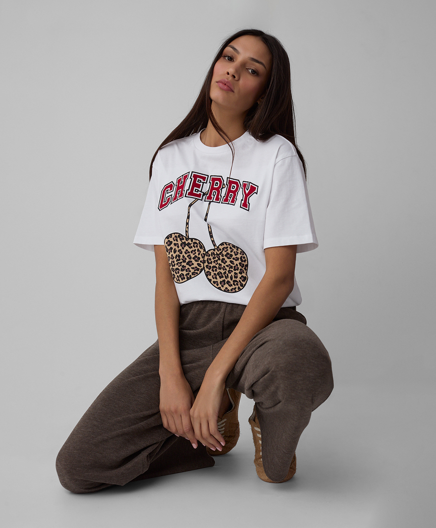 Felpa rosa con ciliegie da donna