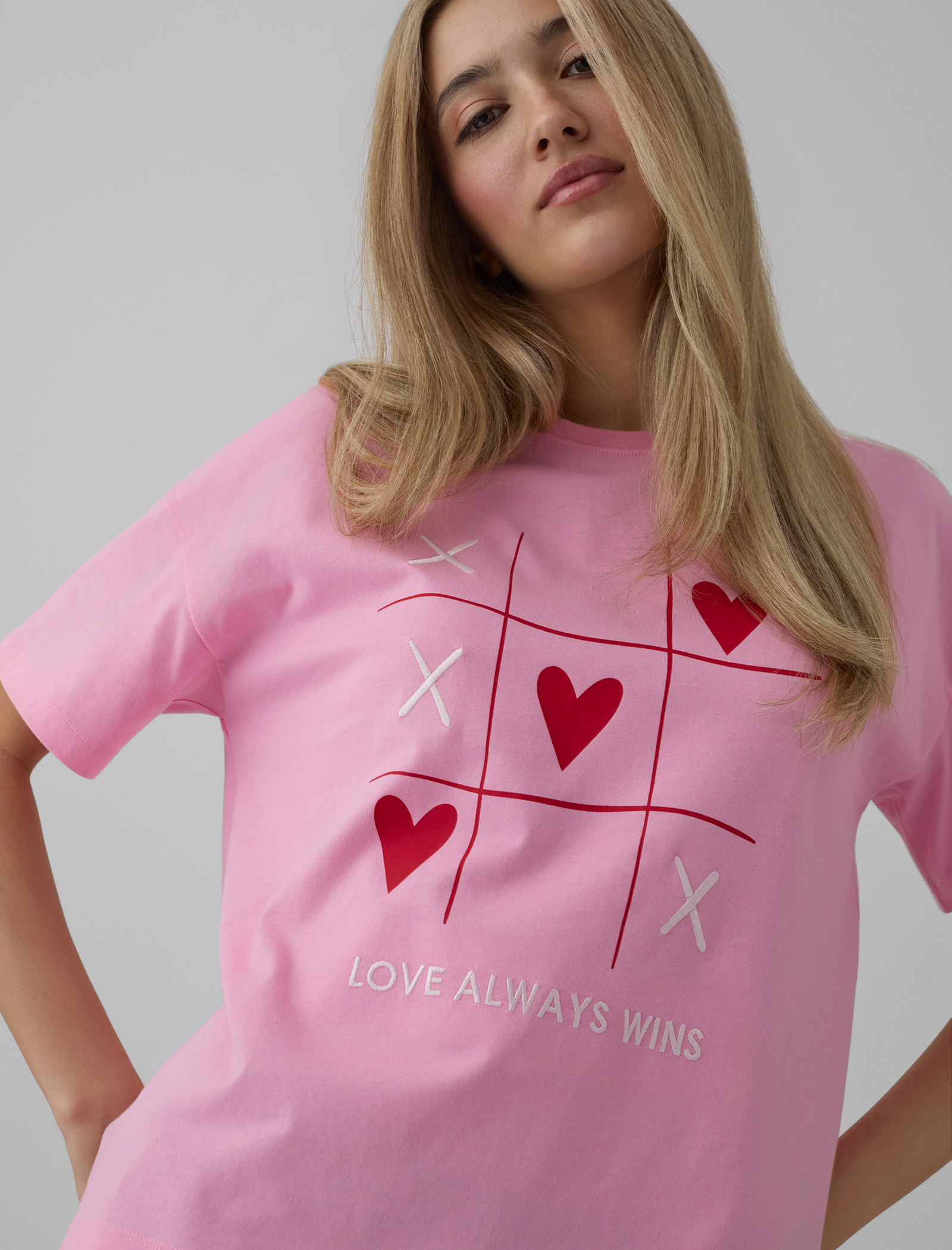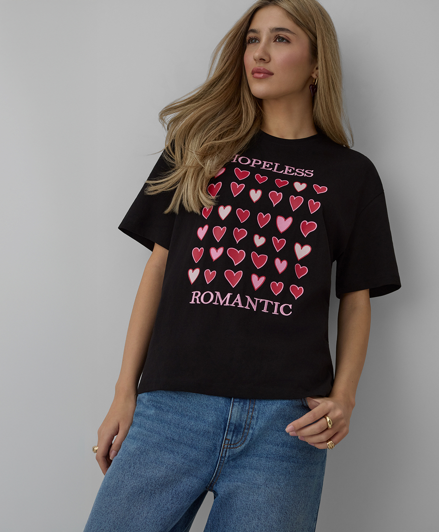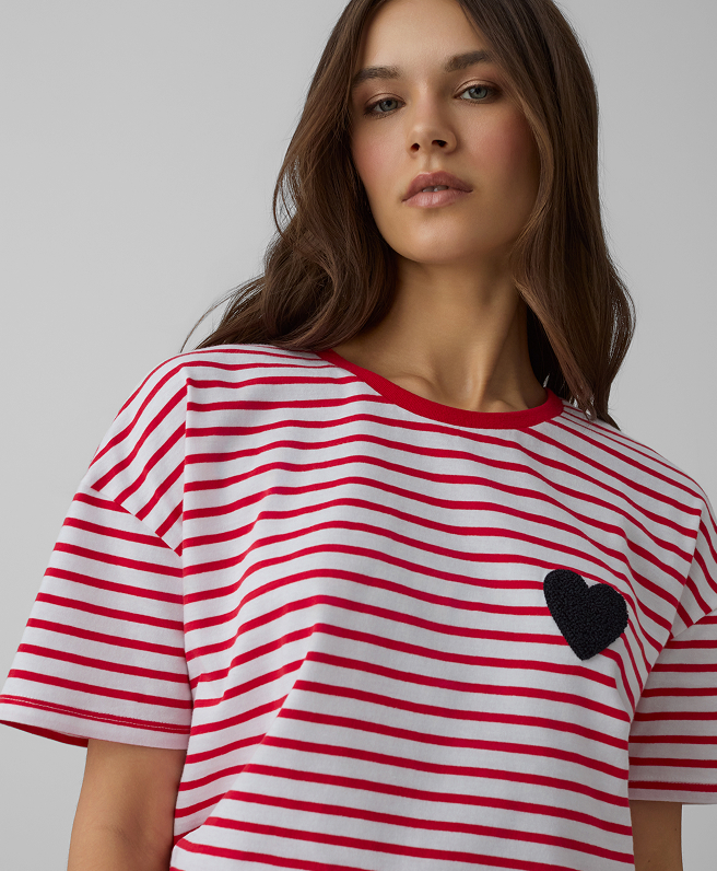 T-shirt rosa con cuori da donna