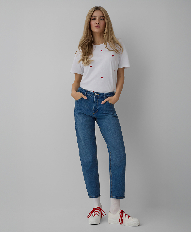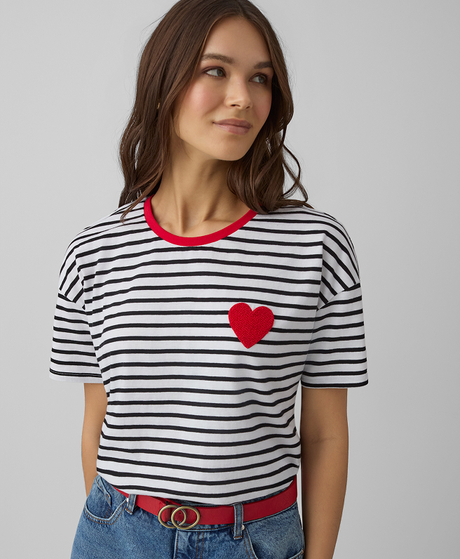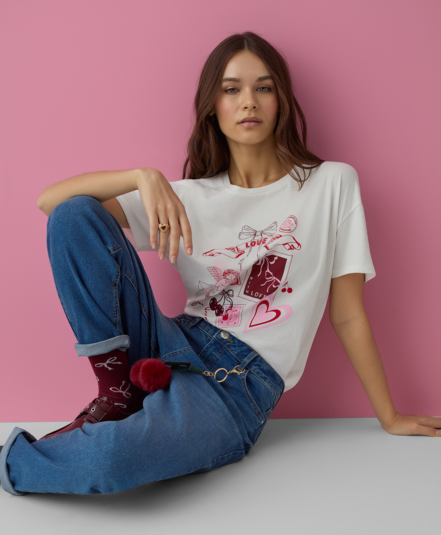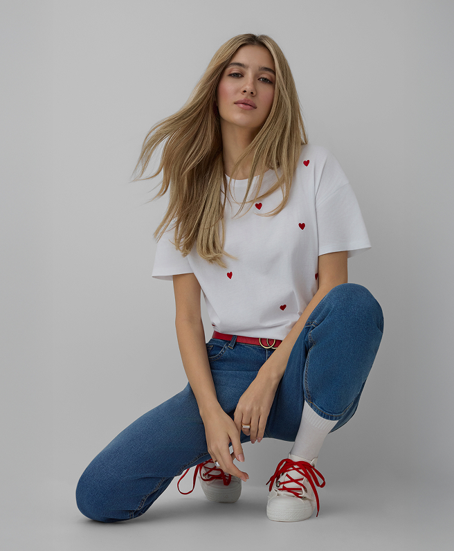 T-shirt bianca con cuori da donna