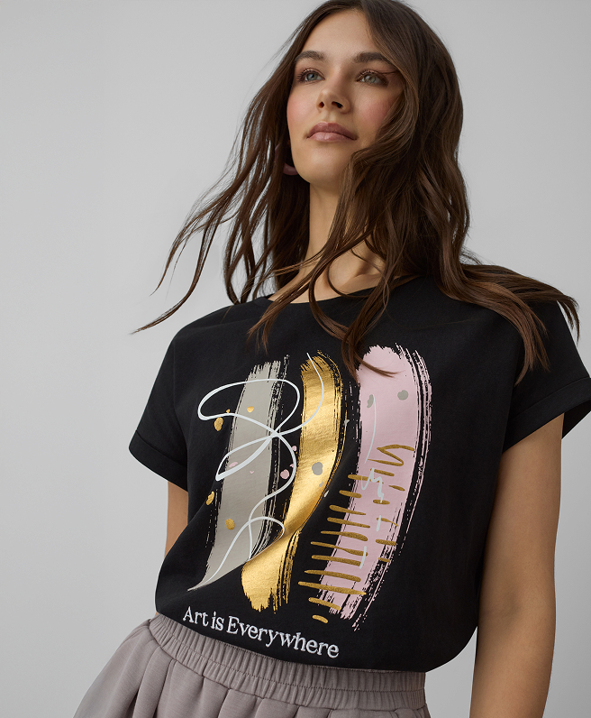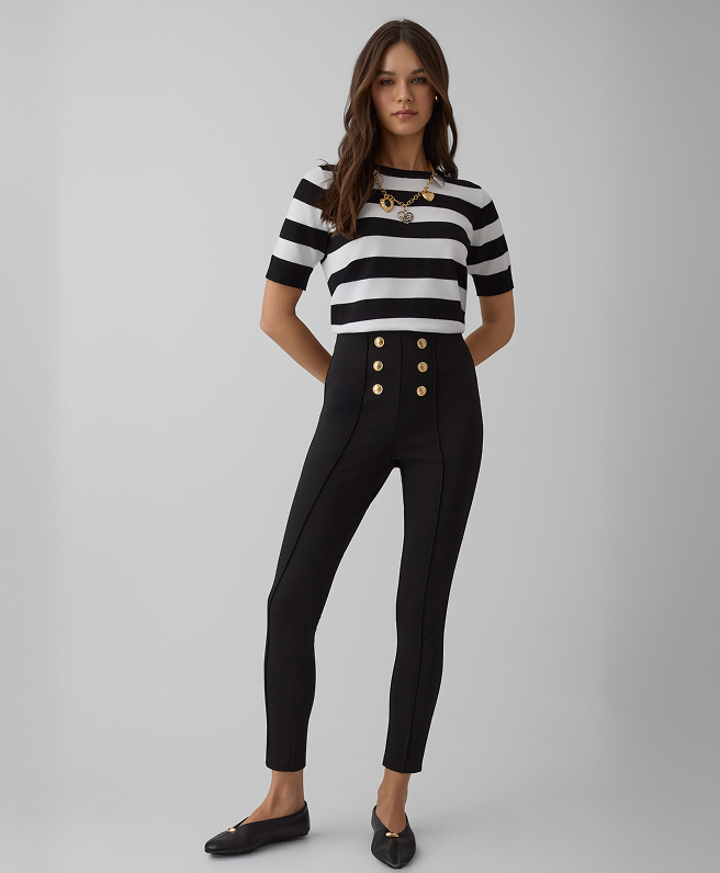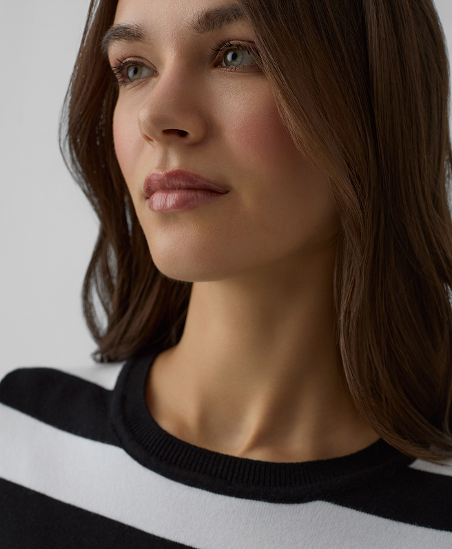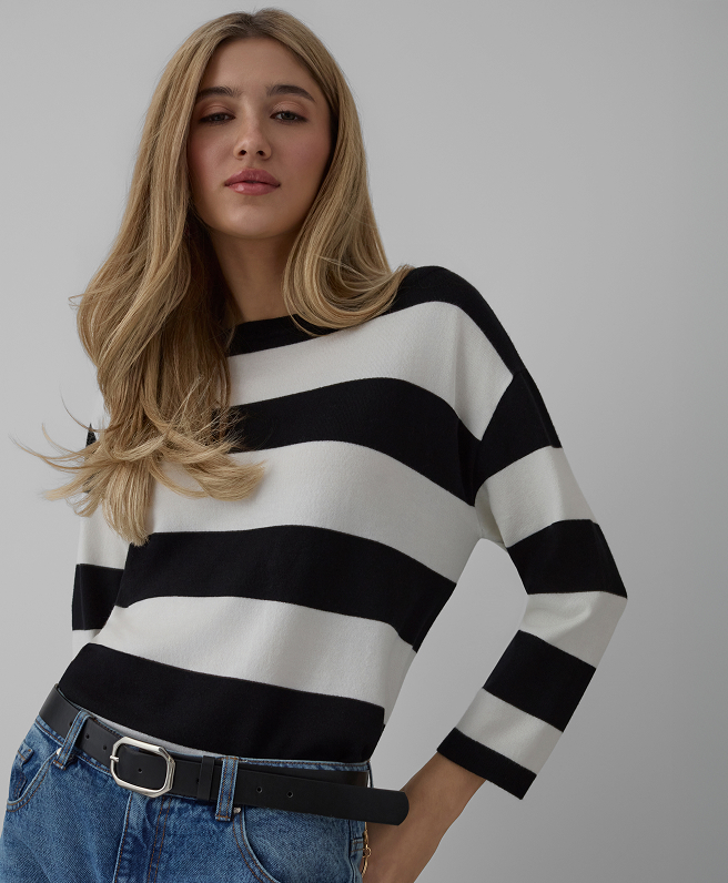 La nuova collezione include anche camicie eleganti e maglie con intramontabili motivi a righe. Preferisci un pullover essenziale o un cardigan morbido con bottoni decorativi? A te la scelta! Lasciati ispirare e crea l’outfit perfetto per valorizzare al meglio il tuo stile personale.