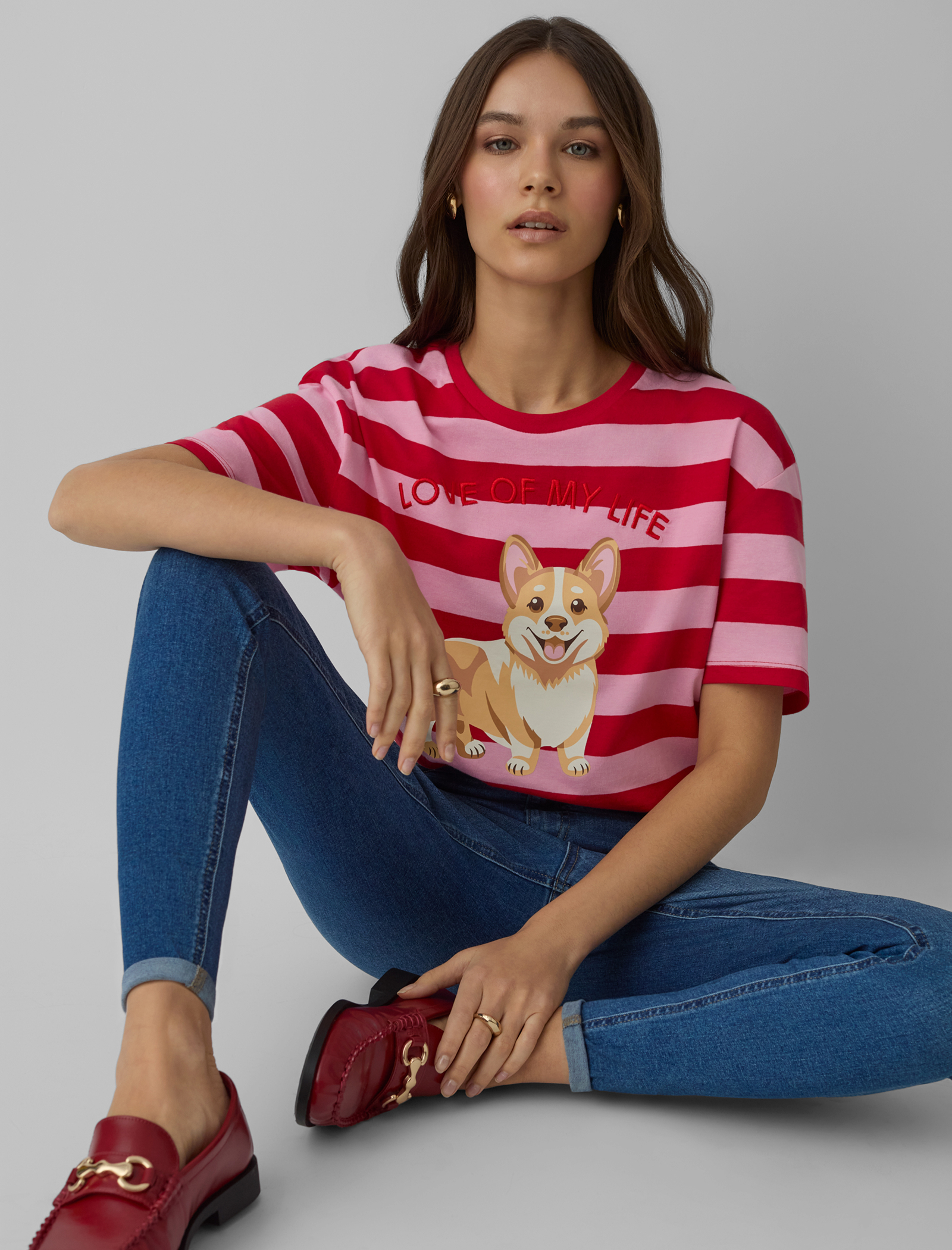 Maglia a righe con cane da donna
