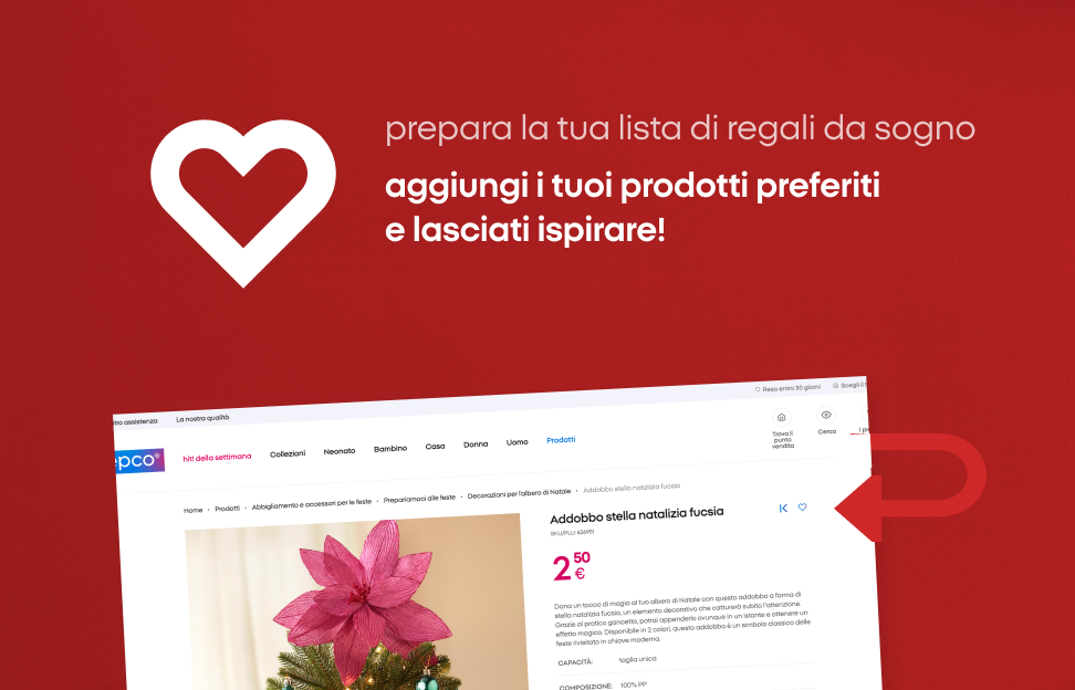 Scopri la magia del Natale con Pepco: Abbigliamento e accessori per le feste | Prepariamoci al Natale | Giocattoli di Natale dei migliori brand | Decorazioni per l’albero di Natale | Lucine di Natale | Regali di Natale | Regali di Natale fino a 5€ | Regali di Natale sotto i 10 euro | Regali di Natale sotto i 15 euro | Regali di Natale fino a 25 euro | Prepariamoci alle feste | Abbigliamento natalizio | Accessori per la cucina di Natale | Accessori per la tavola di Natale | Addobbi e decorazioni natalizie | Candele natalizie | Coperte, cuscini e federe | Idee regalo per Natale | Regali di Natale per lui | Regali di Natale per lei | Regali per bambini