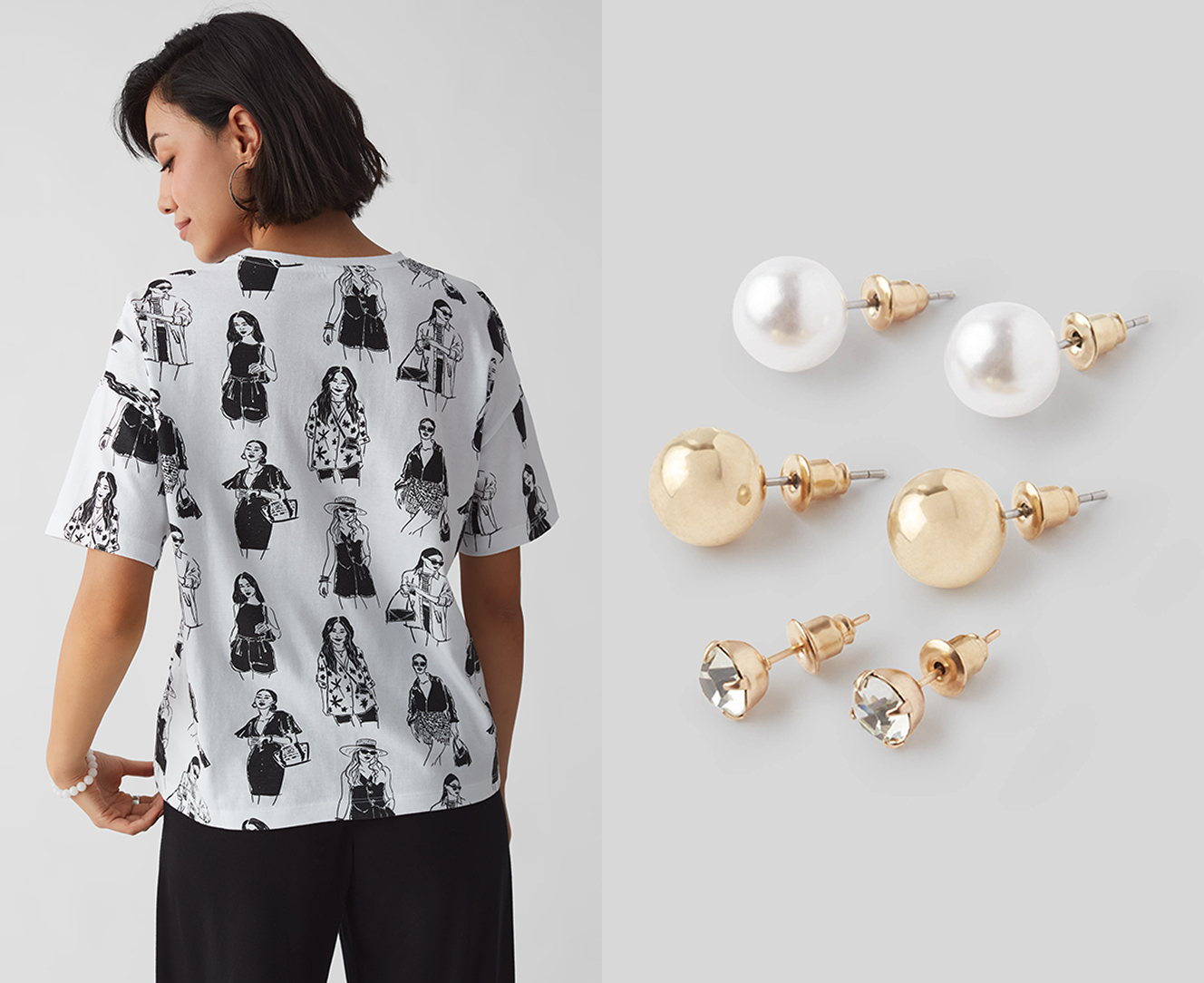 Bianco e nero: l’abbinamento perfetto. Funziona in ogni occasione e sei tu a decidere come interpretarlo: puoi optare per una versione minimalista oppure arricchire il look con accessori originali. Gioielli dorati, argentati o colorati si abbinano alla perfezione.