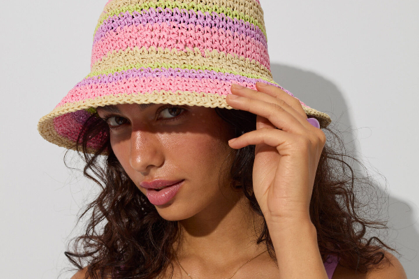 - Un bucket hat per tutti i gusti: immancabile per essere alla moda anche in spiaggia, cool e funzionale, questo cappello ti accompagnerà per tutta l’estate. Nella sua versione in paglia ricorda un po’ lo stile bohémien degli anni 70! Il taglio morbido lo rende comodo e versatile, mentre la visiera tonda e orientata verso il basso garantisce un’ottima protezione dal sole. Il cappello da pescatore sta bene con tutto: dai look più street fino agli outfit da barca, puoi indossarlo per andare in ufficio o abbinarlo a una borsa di paglia per completare il tuo look da mare!