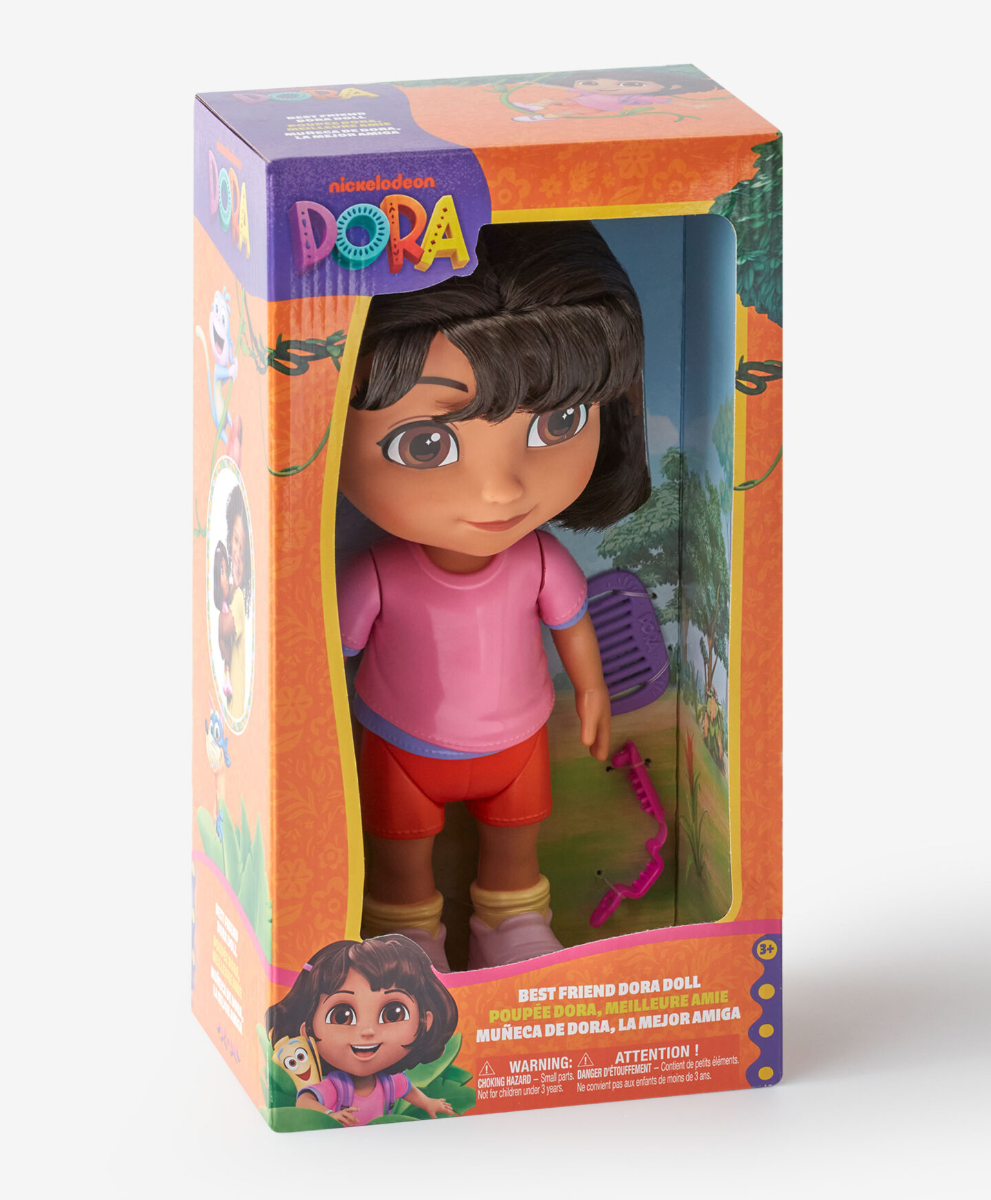 La bambola di Dora l’Esploratrice introduce i bambini alle sue magiche avventure. Vestita con una maglietta rosa e dei pantaloncini arancioni, è identica al personaggio del cartone animato preferito dai bambini, che la riconosceranno immediatamente. I dettagli realistici e il suo caratteristico sorriso renderanno il gioco ancora più coinvolgente e ricco di fantasia.