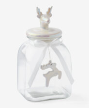 Aggiungi un tocco natalizio alla tua tavola con questo barattolo dal coperchio decorato con un albero di Natale verde, perfetto per conservare dolci o noci e creare un’atmosfera accogliente in un istante. Il design originale lo rende un’idea regalo speciale. Disponibile in 2 varianti, questo barattolo è un elemento decorativo che arricchisce l’ambiente durante le feste.