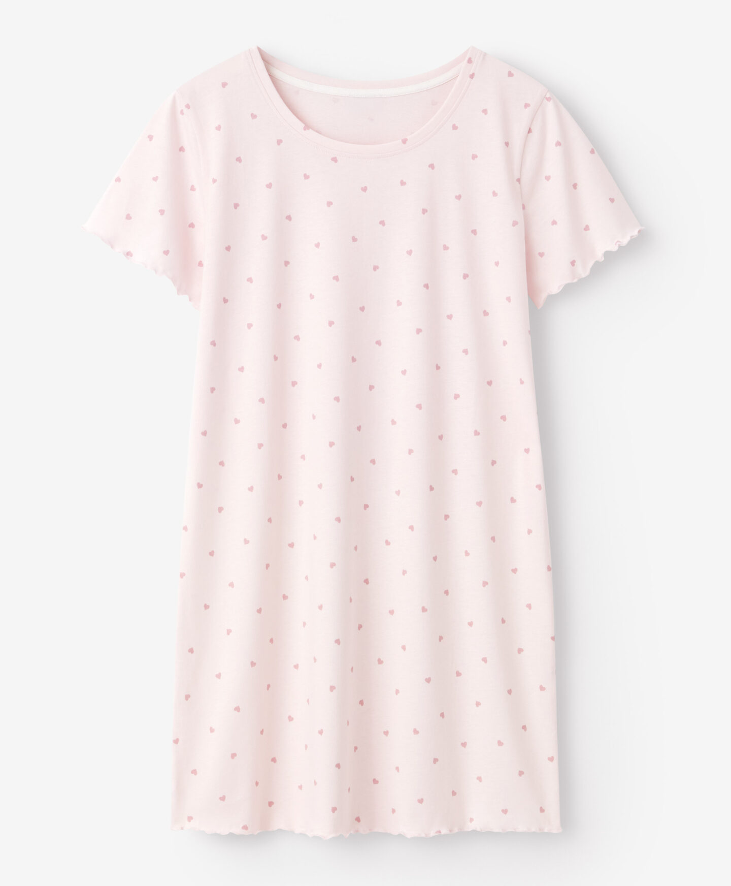 Concediti il massimo comfort durante il sonno con questa incantevole camicia da notte rosa, realizzata in 100% cotone. La sua morbida trama traspirante avvolge delicatamente la pelle, garantendo così libertà di movimento. Il delizioso motivo a cuori aggiunge un tocco di fascino e femminilità, rendendola perfetta per coccolarti ogni notte. Disponibile nelle taglie dalla S alla XXL, questa camicia da notte si adatta a ogni esigenza.