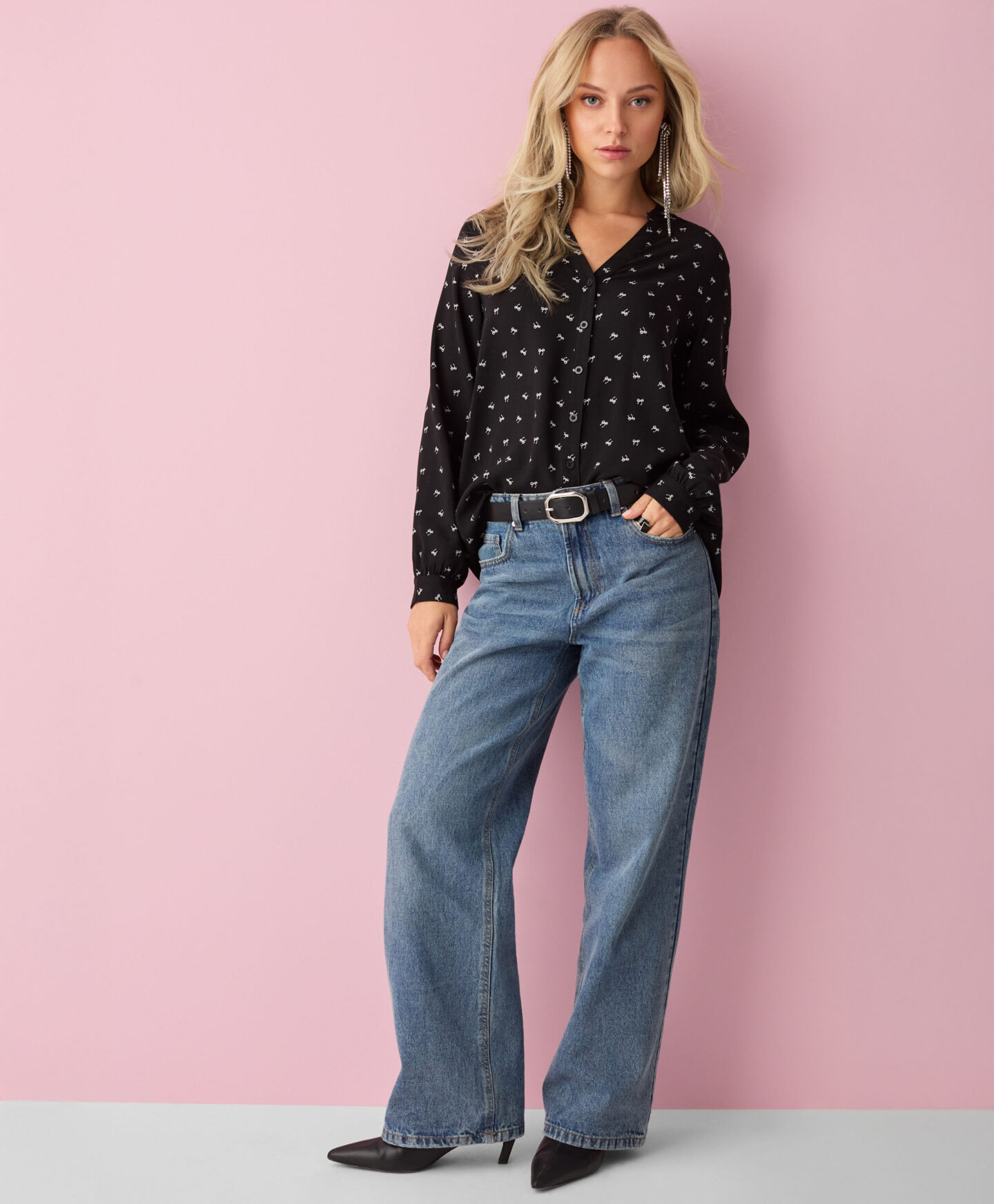 Camicia nera con fiocchi donna