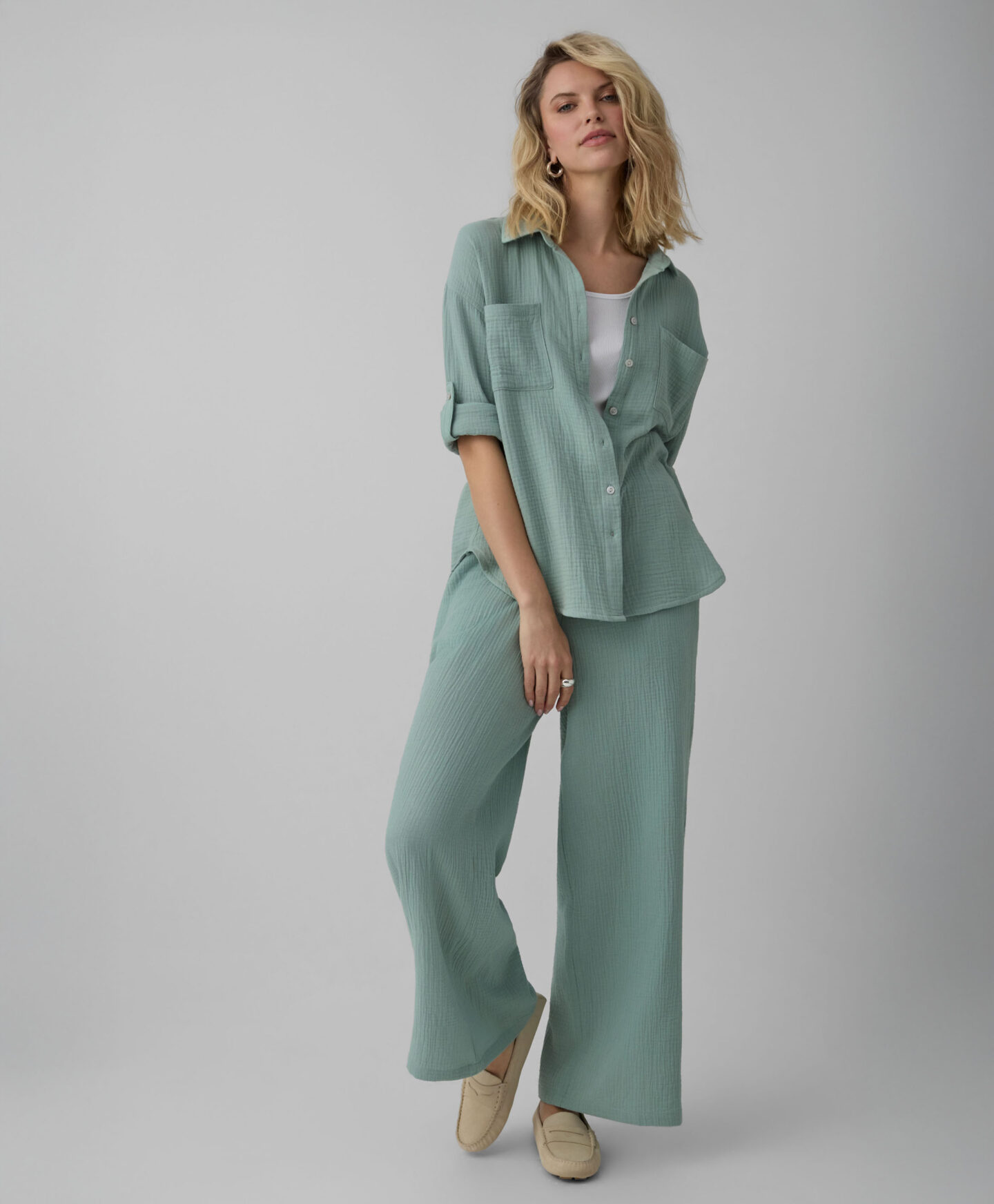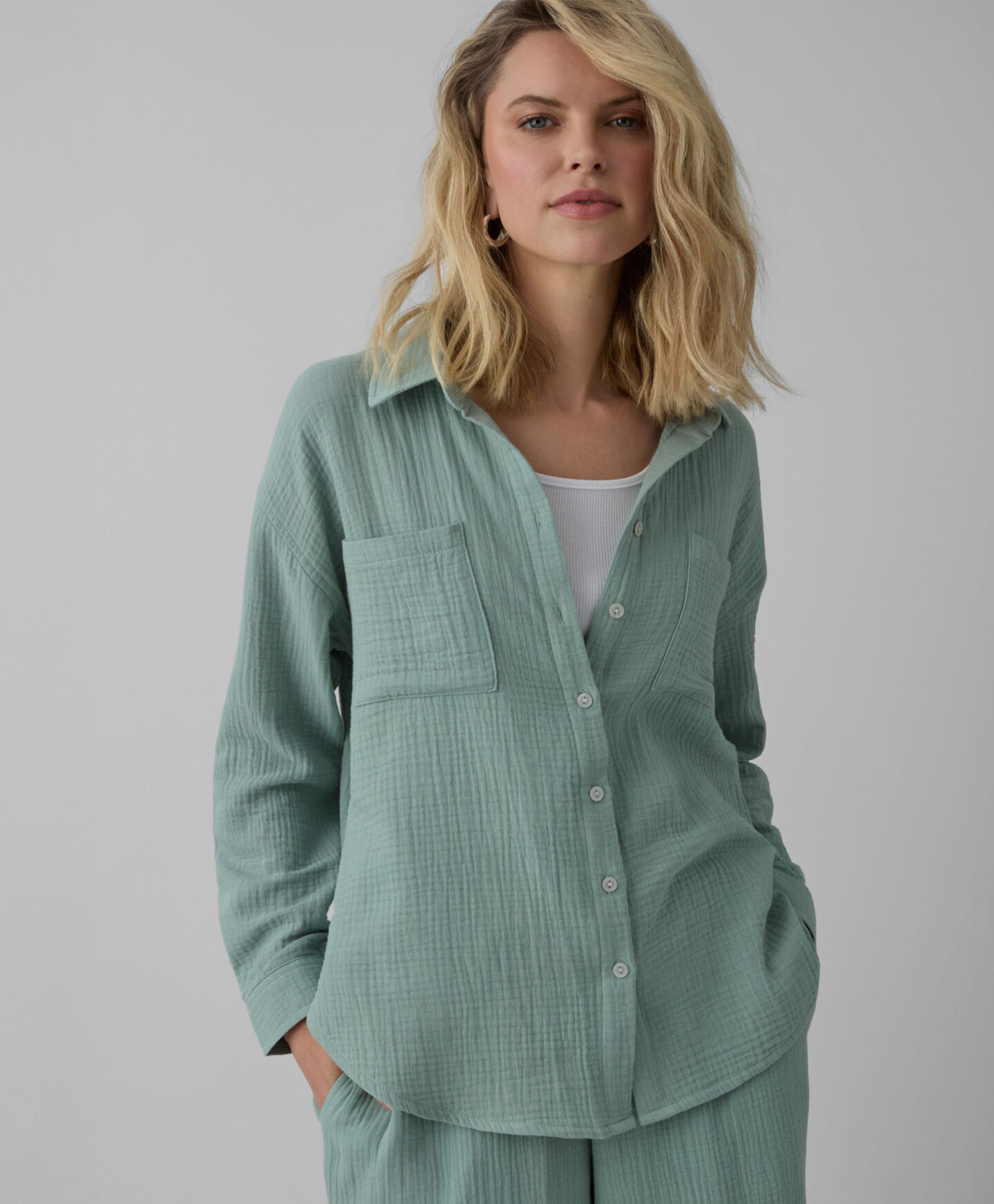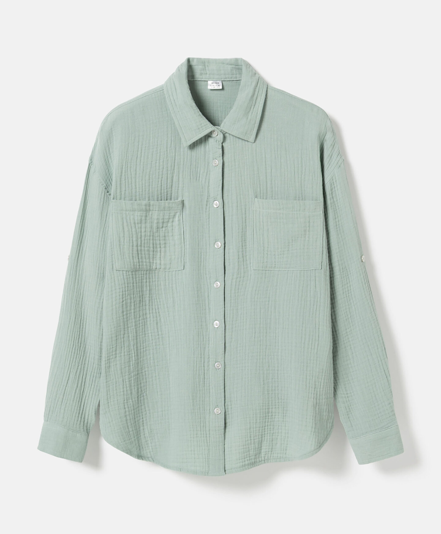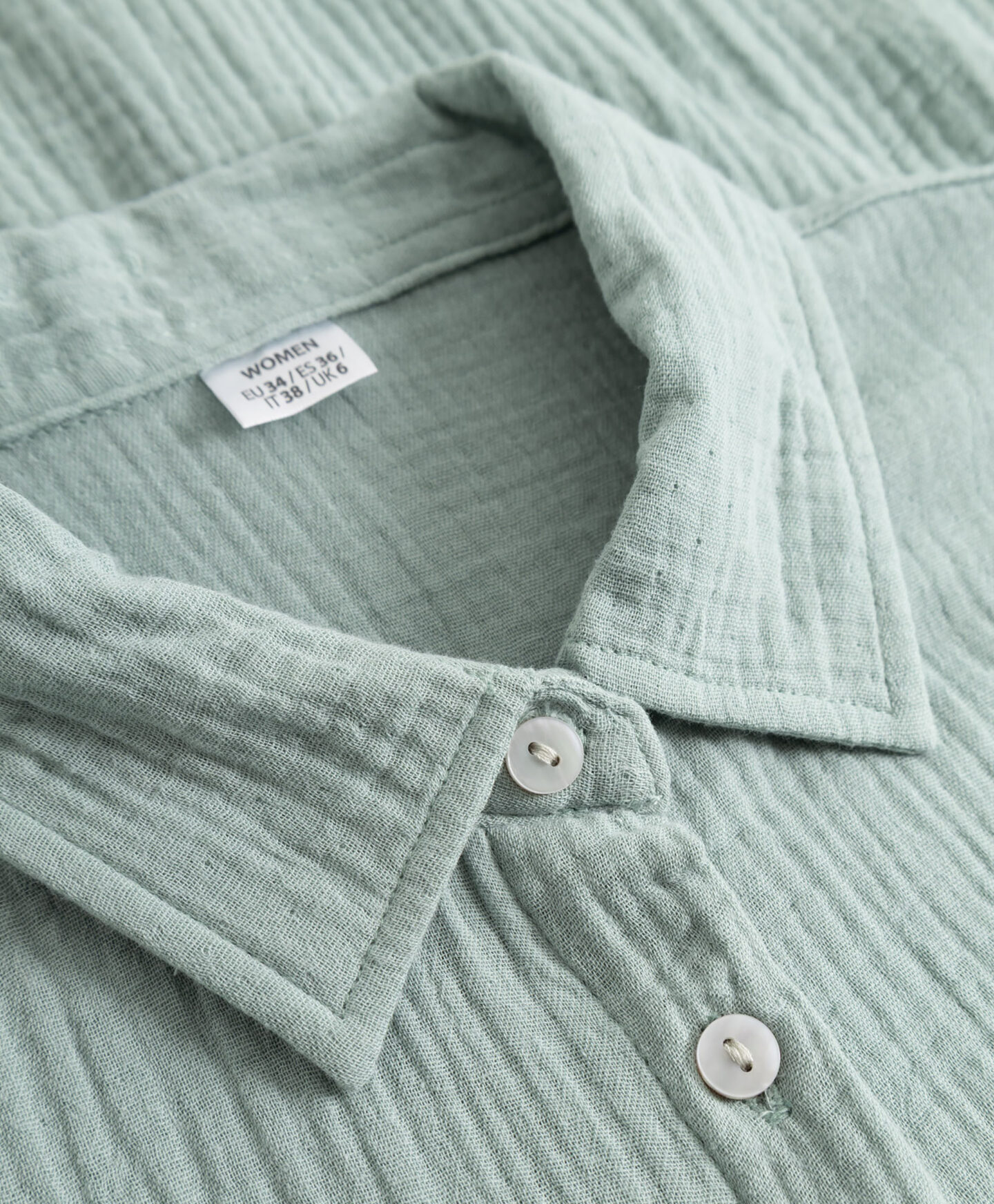 Scopri questa camicia verde da donna, realizzata in puro cotone e pensata per chi ama unire stile e comfort. Morbida come una carezza e leggera come una piuma, ti avvolge con delicatezza e lascia respirare la pelle in ogni stagione. Il colore pastello si abbina perfettamente a pantaloni, gonne o jeans, rendendola un jolly perfetto per il lavoro, una cena tra amiche o una passeggiata al parco. Questa camicia è un capo che porta freschezza al tuo armadio, senza mai passare di moda.
