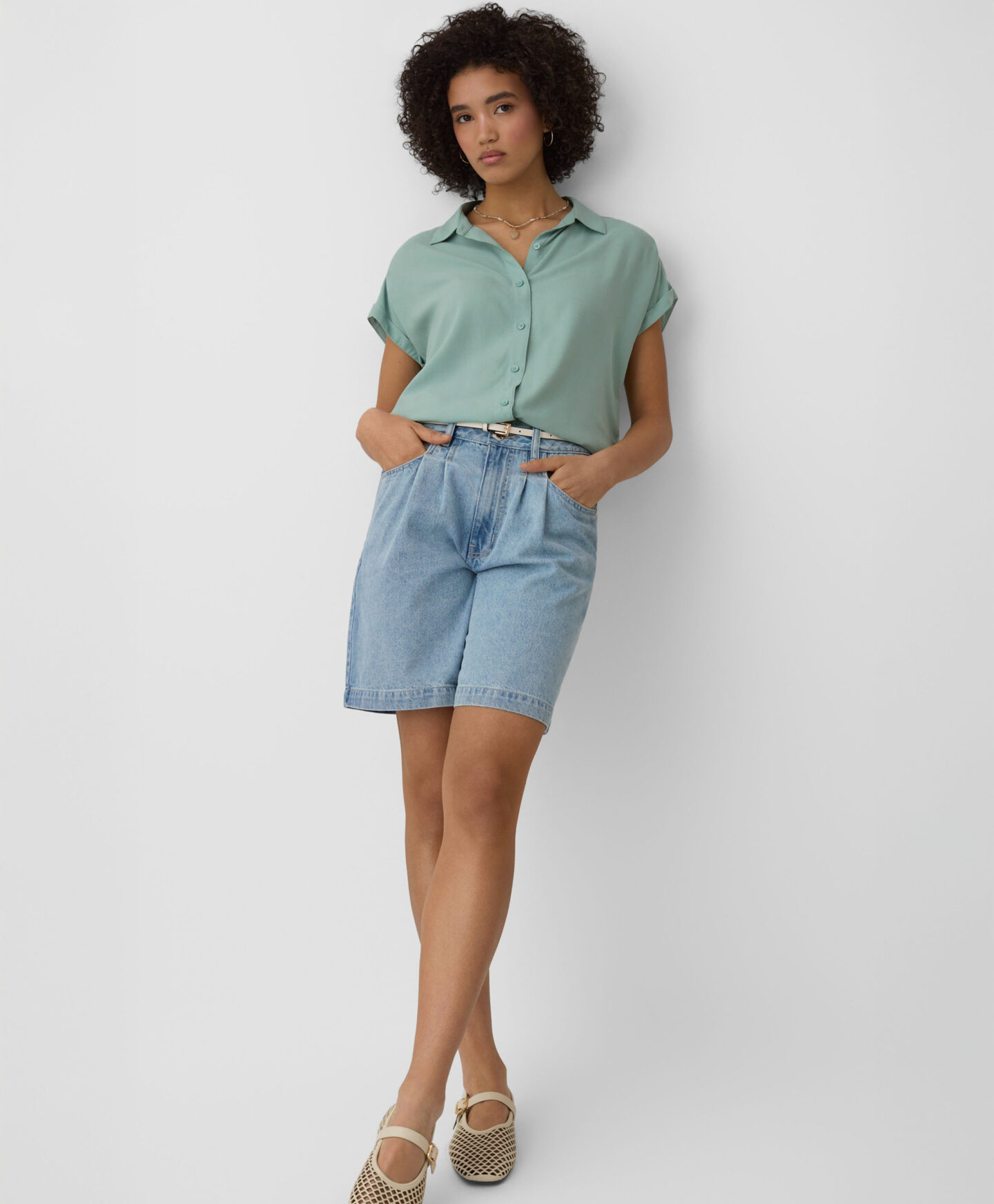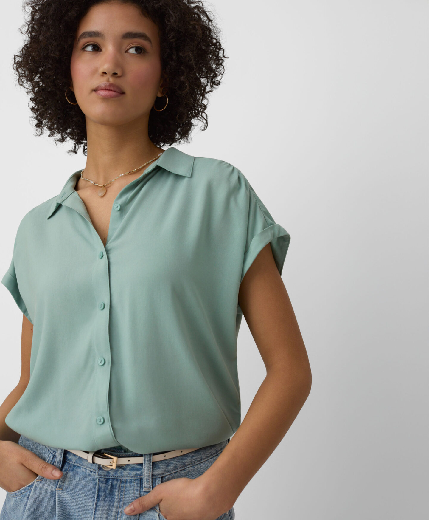Aggiungi un tocco di freschezza al tuo guardaroba estivo con questa camicia verde con maniche corte da donna, realizzata in 100% viscosa. Leggera e traspirante, è perfetta per affrontare le giornate più calde con stile e comfort. Le maniche corte e il tessuto morbido avvolgono la silhouette in modo naturale, garantendo una sensazione di benessere per tutto il giorno. Abbinala ai tuoi shorts preferiti, ai jeans o a un paio di pantaloni eleganti per creare look versatili e sempre impeccabili.
