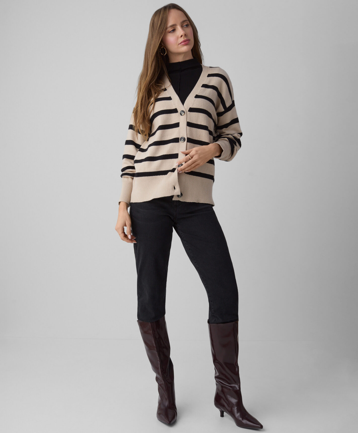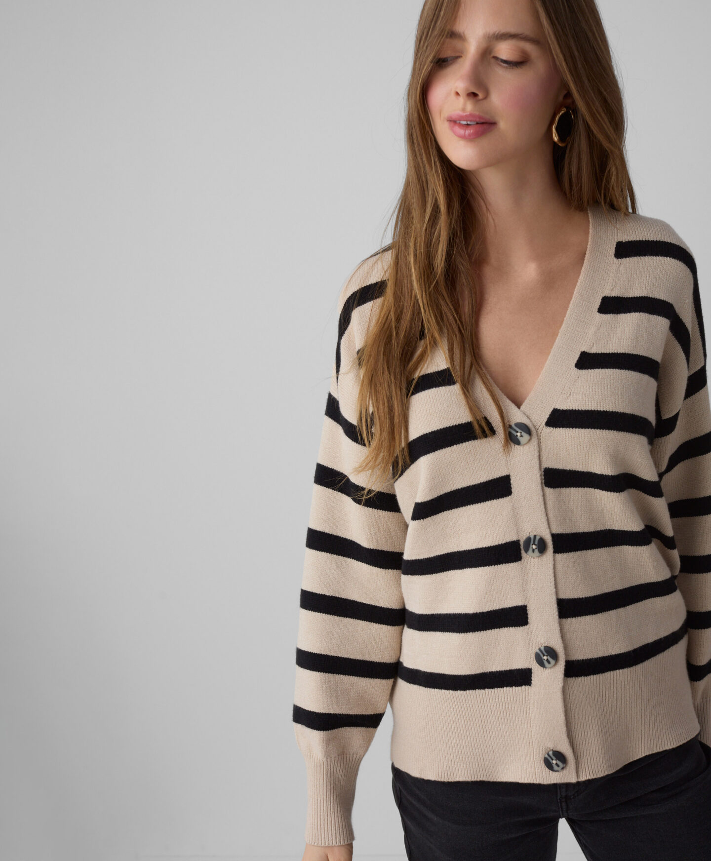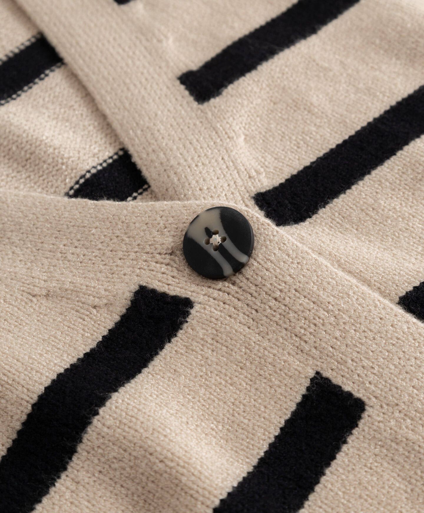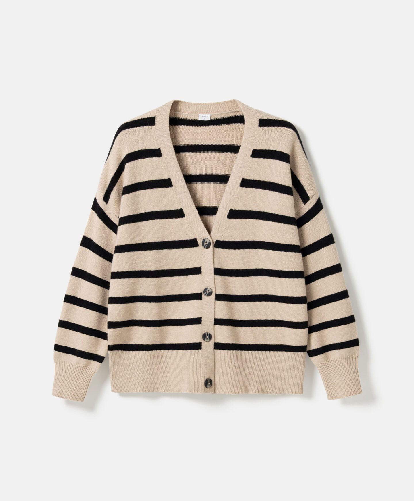Rinnova il tuo guardaroba invernale con questo cardigan beige a righe da donna, perfetto per chi ama unire eleganza e comfort. Il taglio morbido e avvolgente, arricchito da una delicata percentuale di viscosa, garantisce calore e benessere nelle giornate più fredde. Ideale per creare look raffinati e confortevoli in ogni occasione, questo capo versatile si abbina splendidamente sia a pantaloni eleganti che a jeans classici, offrendo così infinite possibilità di styling.