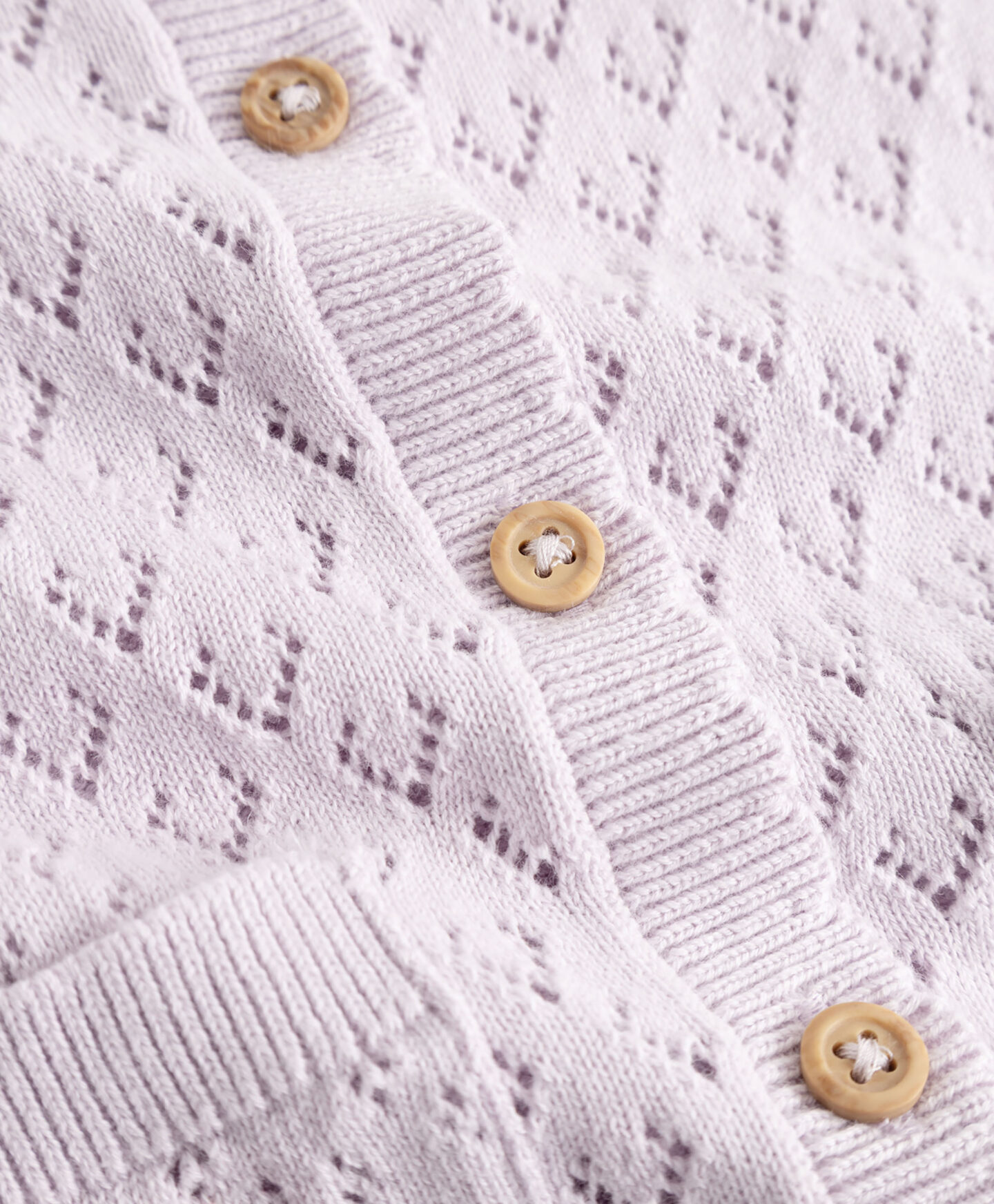 Porta un tocco di dolcezza nel guardaroba della tua piccola con questo cardigan viola da neonata in puro cotone! Morbido e leggero, lascia respirare la pelle e regala comfort. Il motivo floreale ricamato sulla tasca aggiunge un dettaglio chic che rende ogni outfit unico. Perfetto da abbinare a una t-shirt, una camicina o un vestitino, questo cardigan è un capo pratico e irresistibile, pensato per creare look da favola!