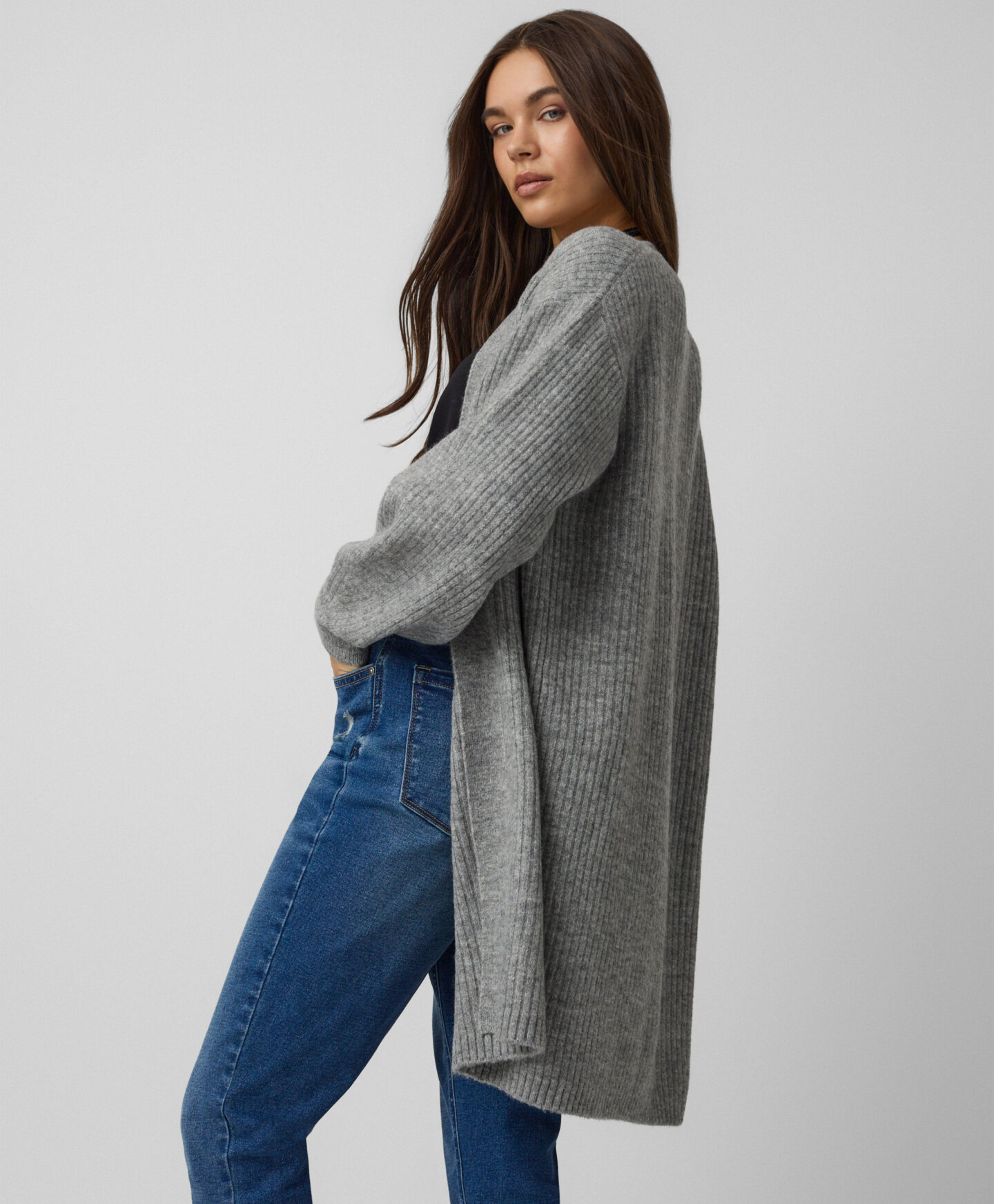 Cardigan lungo grigio da donna