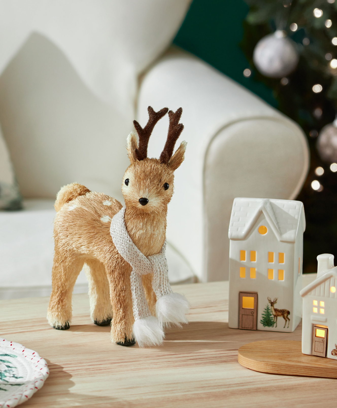 Dai un tocco di magia natalizia alla tua casa con questo cervo decorativo in paglia, avvolto in una morbida sciarpa bianca. La sua lavorazione artigianale e i dettagli curati lo rendono perfetto per arricchire sia arredi classici che moderni, donando un’atmosfera calda e accogliente a ogni ambiente. Leggero e raffinato, è l’ideale per aggiungere un tocco di eleganza alle tue decorazioni natalizie.