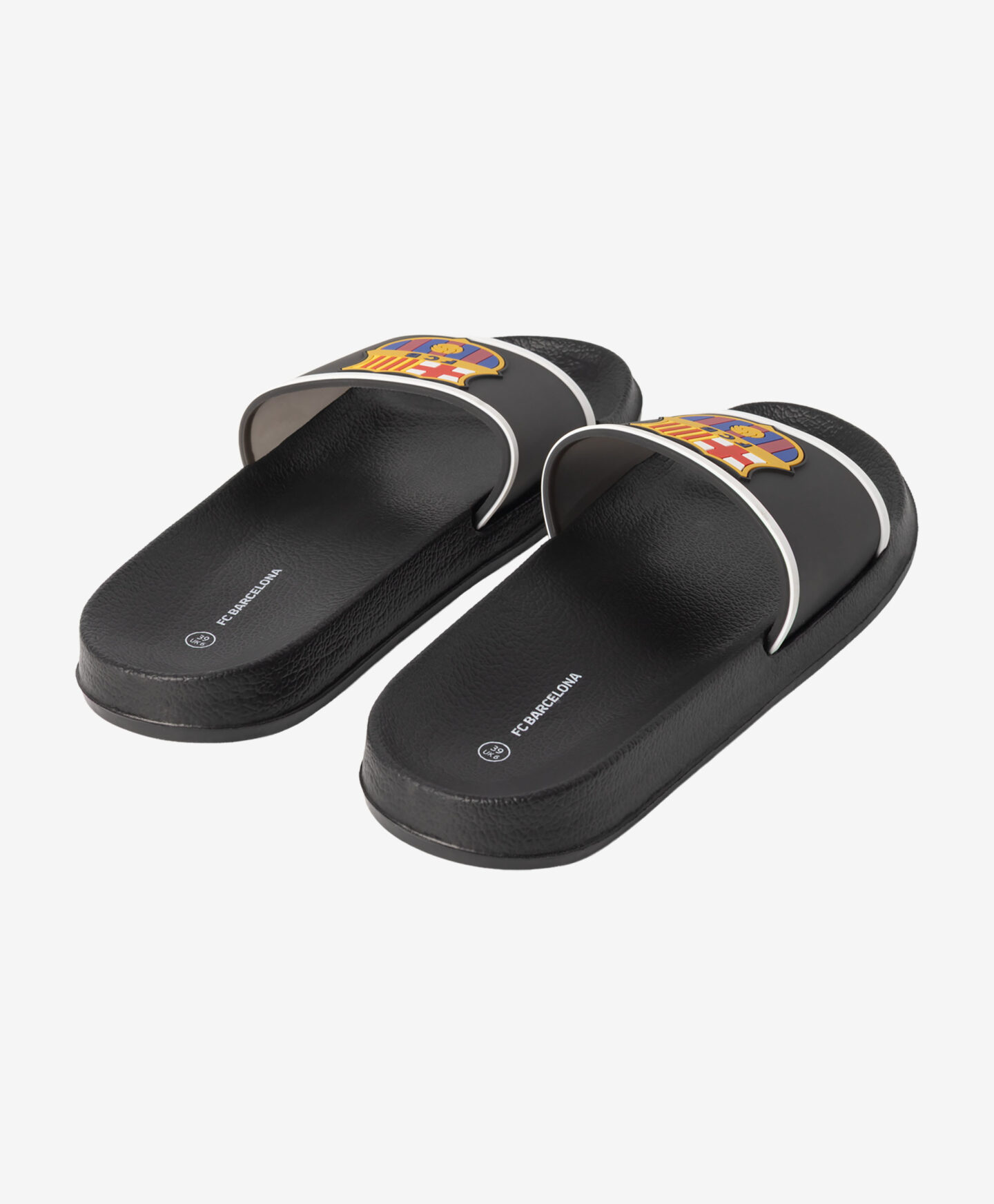 Porta la passione per il calcio sempre con te con queste ciabatte nere da ragazzo del Barcellona. Leggere e comode, sono perfette da indossare a casa, in piscina o durante le vacanze estive. Il logo della tua squadra del cuore aggiungerà un tocco di originalità anche nei momenti di relax.