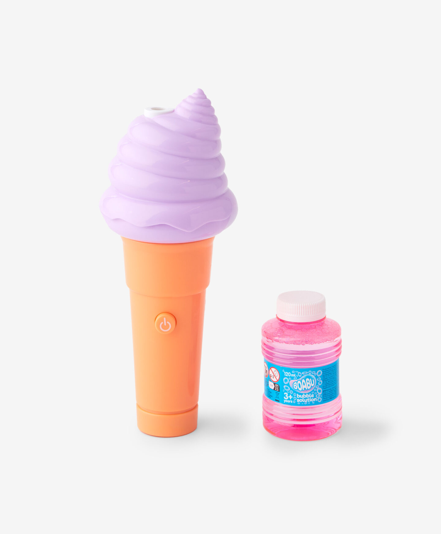 Questa macchina spara bolle a forma di cono gelato viola è perfetto per garantire ore di divertimento ai piccoli di casa. Ideale da portare sempre con sé, diventerà il gioco preferito di bambine e bambini. Il set include anche il liquido per le bolle ed è disponibile anche in un’altra colorazione.