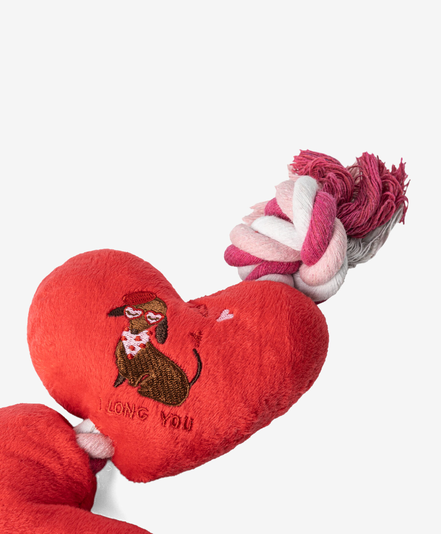 Rendi il gioco con il tuo cane ancora più divertente con questa corda giocattolo arricchita da due morbidi cuori! Uno dei cuori emette un simpatico squittio che stimola la curiosità e l’interazione del tuo amico a quattro zampe. Realizzata in materiale resistente, è perfetta per giocare al tiro alla fune, mentre i cuori imbottiti offrono comfort durante la masticazione. Un modo ideale per far divertire il tuo cane e trascorrere momenti di complicità insieme!
