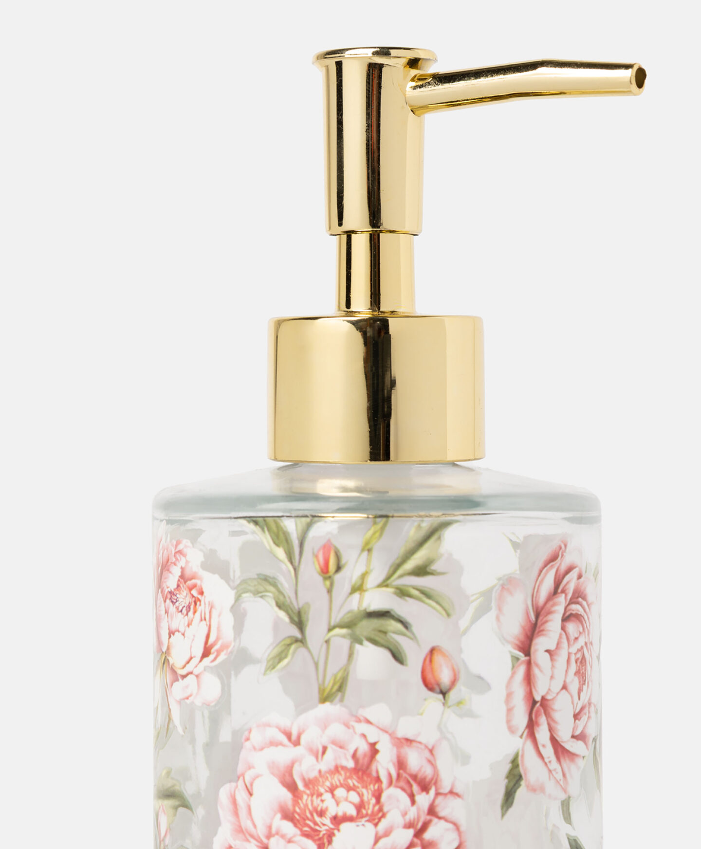Dai un tocco di freschezza al tuo bagno con questo elegante dispenser per sapone liquido in vetro, impreziosito da un delicato motivo floreale. Pratico e funzionale, basta una leggera pressione per ottenere la giusta quantità di sapone, evitando sprechi e mantenendo tutto in perfetto ordine. Ideale sia per il lavabo del bagno che per il lavello della cucina, questo dispenser unisce stile e praticità in un unico accessorio.
