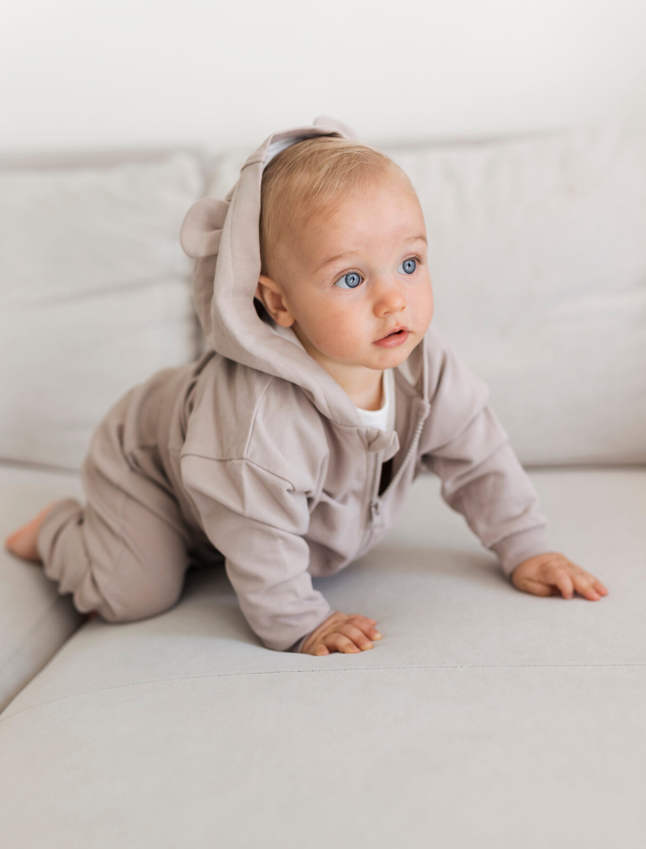 Trasforma ogni giornata in un’avventura stupenda con questa felpa beige da neonato, dotata di un cappuccio con simpatiche orecchie 3D. Realizzata in morbido materiale naturale, offre il massimo comfort e calore, rendendola perfetta per le passeggiate all’aperto o per giocare in casa nei giorni più freschi. Questa felpa è la scelta ideale per coccolare i più piccoli con stile e praticità.