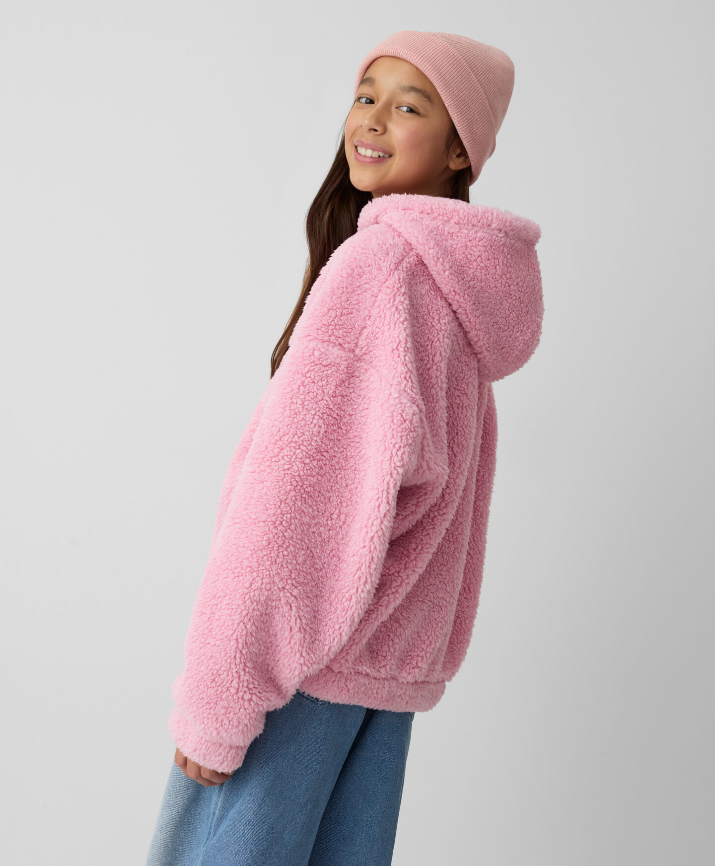 Avvolgiti in una nuvola di morbidezza con questa felpa rosa effetto peluche da ragazza, pensata per regalarle calore e comfort nei giorni più freddi. Il tessuto super soffice la rende perfetta per le giornate all’aria aperta, mentre il cappuccio protegge dal vento. Il taglio oversize garantisce massima libertà di movimento e il dettaglio del fiocco sul davanti dona un tocco di dolcezza. Ideale per la scuola o il tempo libero, questa felpa è un capo fondamentale per affrontare la stagione.