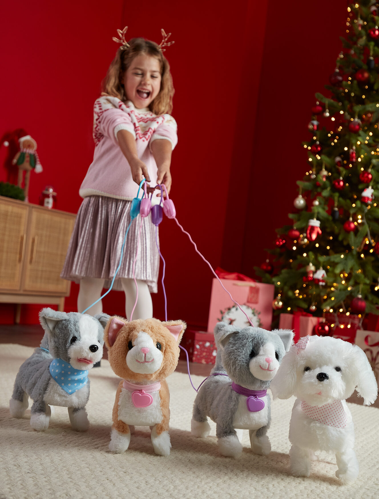 Fai felice il tuo piccolo con questo adorabile gattino interattivo con guinzaglio rosa, il compagno perfetto per trasformare ogni passeggiata in un’avventura piena di divertimento. Questo morbido micio, con il suo pelo vellutato e il dolce miagolio, muove la coda e cammina, stimolando la fantasia e l’affetto dei bambini come se fosse un vero animaletto da accudire. Ideale per giocare in casa o all’aria aperta, questo giocattolo è la scelta perfetta per chi sogna di avere un amico a quattro zampe. Disponibile in 4 varianti.