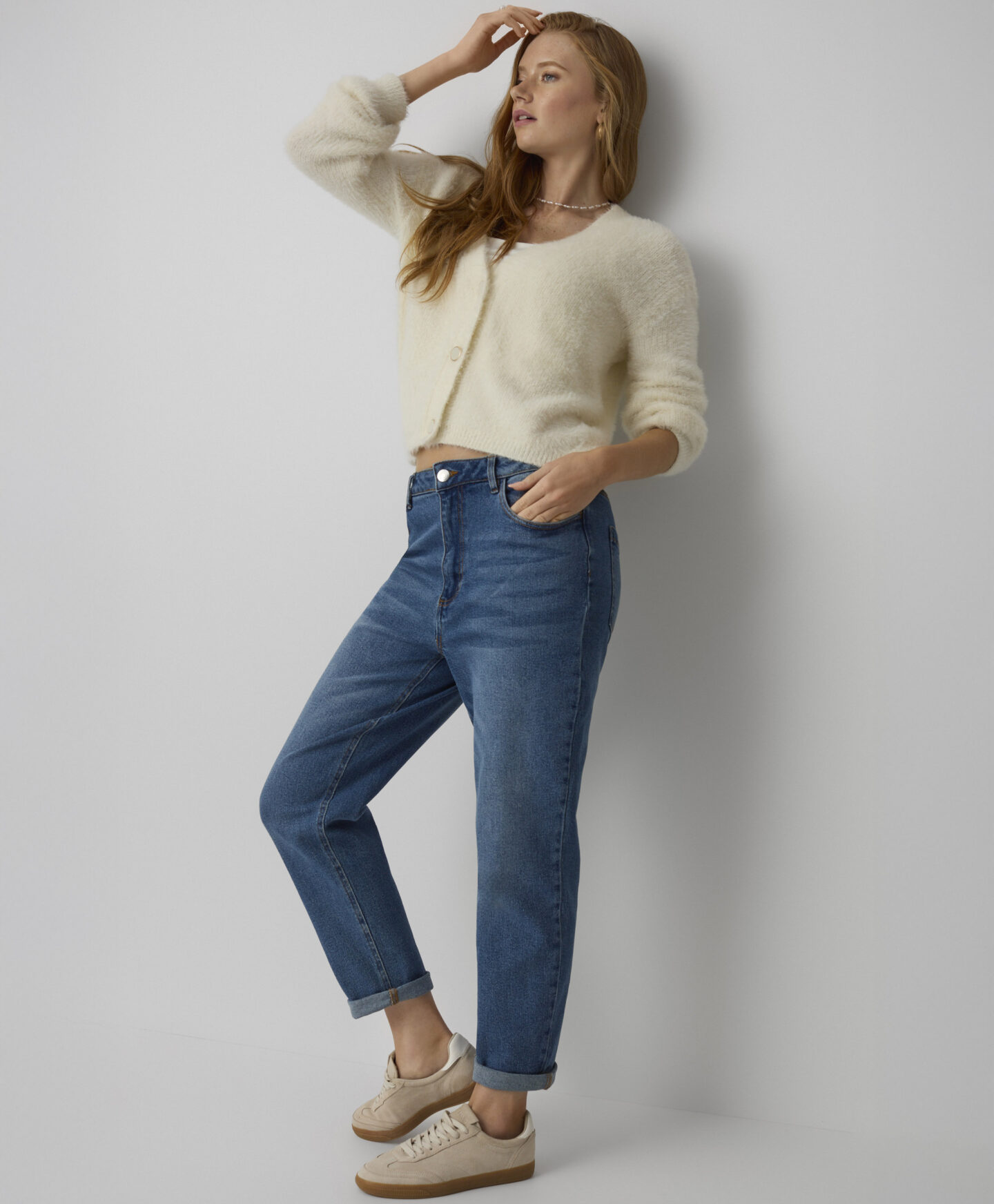 Scegli l’eleganza di questi jeans blu navy da donna, realizzati con un’alta percentuale di cotone per garantire morbidezza e comfort per tutto il giorno. Il loro colore blu scuro li rende incredibilmente versatili, perfetti per essere abbinati a magliette, felpe o camicette del tuo guardaroba. Che tu li indossi per una giornata di lavoro, per una passeggiata in città o per un pomeriggio di shopping, questi jeans ti assicureranno uno stile sempre impeccabile e una vestibilità che si adatta a ogni occasione.