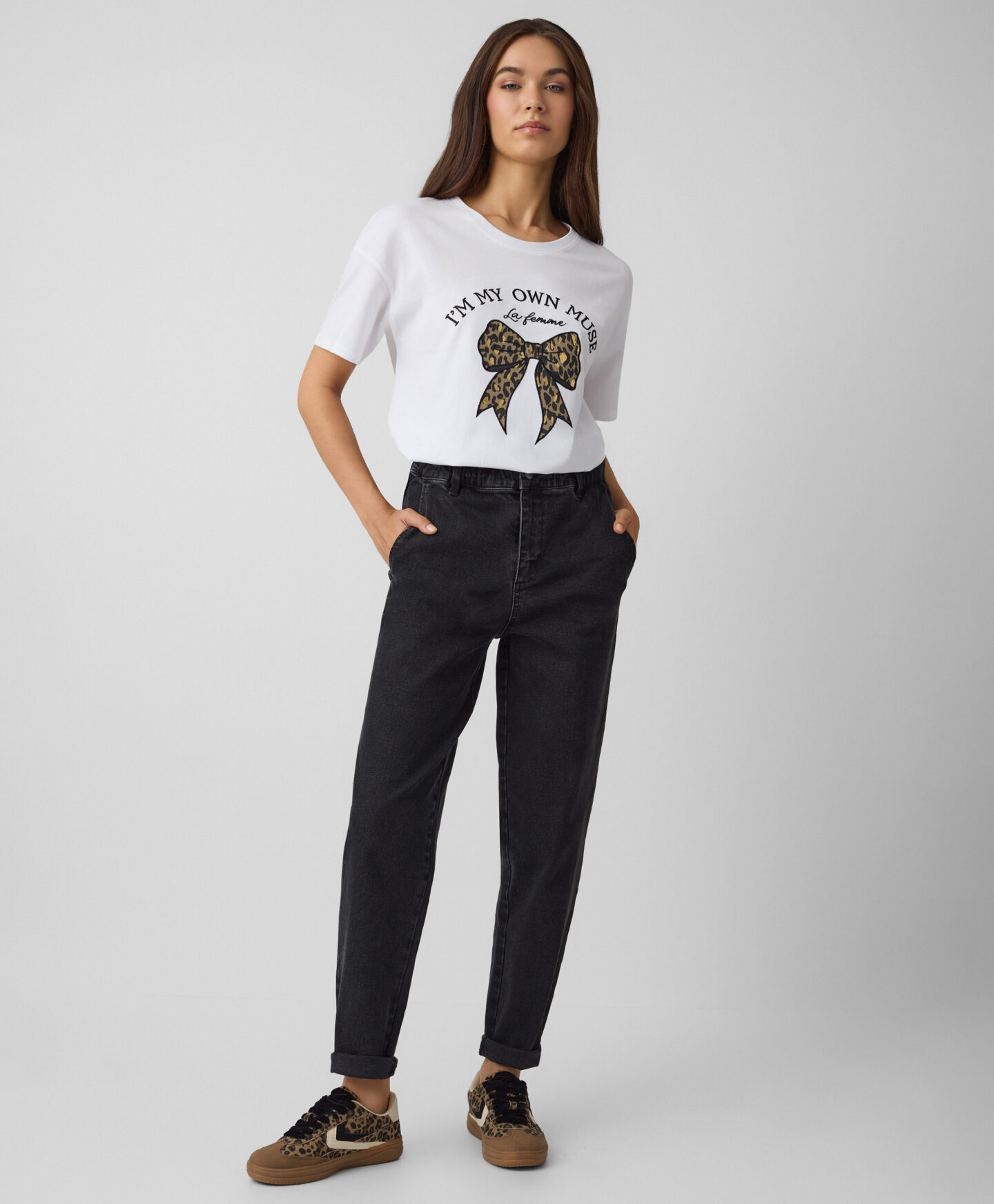 Aggiungi un capo essenziale al tuo guardaroba con questi jeans neri a vita alta da donna, perfetti per ogni occasione. Realizzati con una ricca percentuale di cotone, garantiscono comfort e stile sia in ufficio che nel tempo libero. Abbinali a una classica maglietta bianca per un look fresco e informale oppure a un maglioncino per un tocco più elegante e sofisticato. Disponibili nelle taglie dalla 36 alla 44, questi pantaloni sono un must-have per chi cerca praticità senza rinunciare all’eleganza.