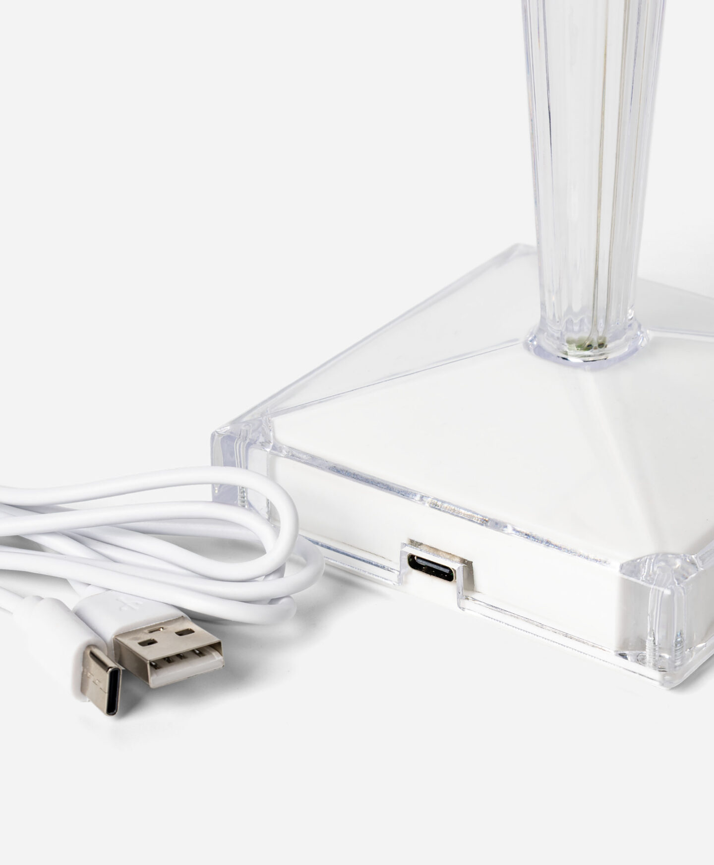 Trasforma ogni stanza in un angolo magico con questa lampada LED con un design che ricorda la finitura del cristallo. Grazie al suo paralume trasparente, diffonde una luce calda e avvolgente che crea un’atmosfera unica, perfetta per le serate autunnali e invernali. Ideale per illuminare con stile la camera da letto, il soggiorno o lo studio, questa lampada è la scelta perfetta per chi desidera un tocco di eleganza e raffinatezza in casa.