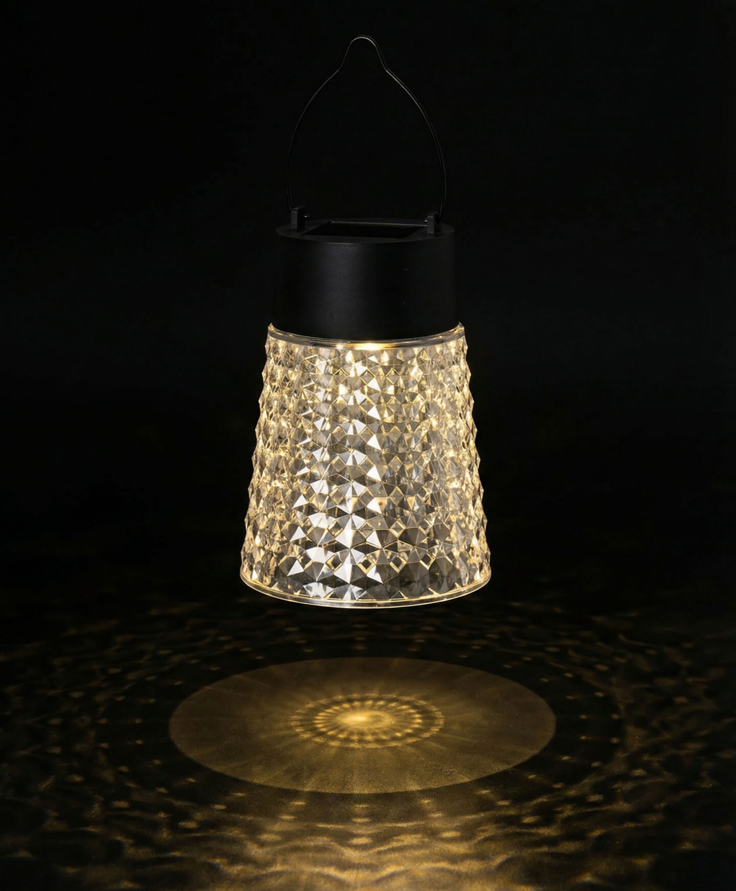 Dai un tocco di magia al tuo giardino o balcone con questa lampada solare da appendere dal design elegante. Grazie al pannello solare integrato, si accende automaticamente al tramonto e si spegne all’alba, offrendo una luce soffusa e decorativa senza bisogno di cavi o batterie. Il paralume diffonde la luce in modo artistico, creando giochi di riflessi. Dotata di un pratico gancio, puoi appenderla facilmente a un ramo, a una trave o a un supporto dedicato. Questa lampada è perfetta per illuminare le serate estive con stile!