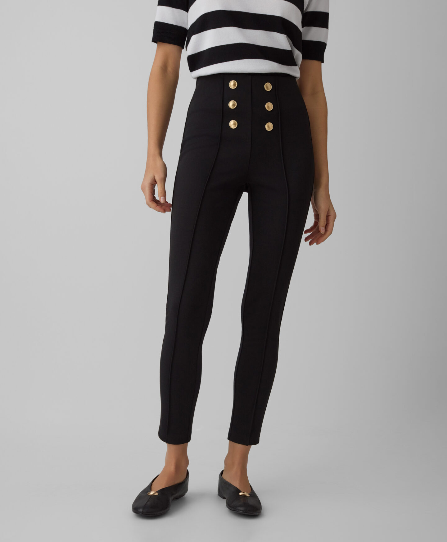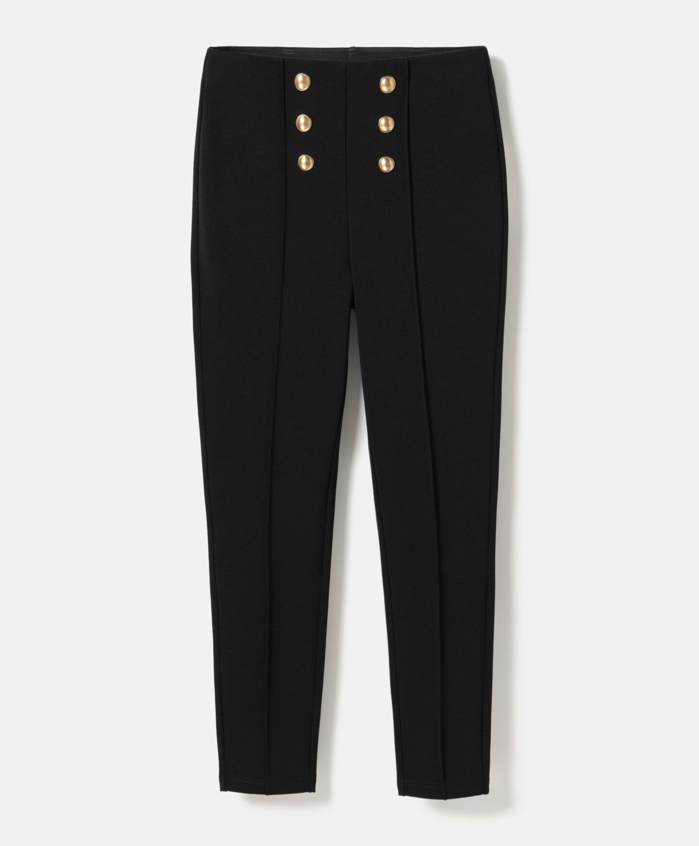 Aggiungi un tocco di eleganza ai tuoi look con questi leggings neri da donna, arricchiti da raffinati bottoni decorativi. Perfetti per chi ama coniugare comfort e stile, si adattano a qualsiasi occasione e sono perfetti sia per un outfit casual che elegante. Il tessuto elasticizzato garantisce una vestibilità impeccabile e valorizza la silhouette, mentre i dettagli aggiungono un tocco di originalità.