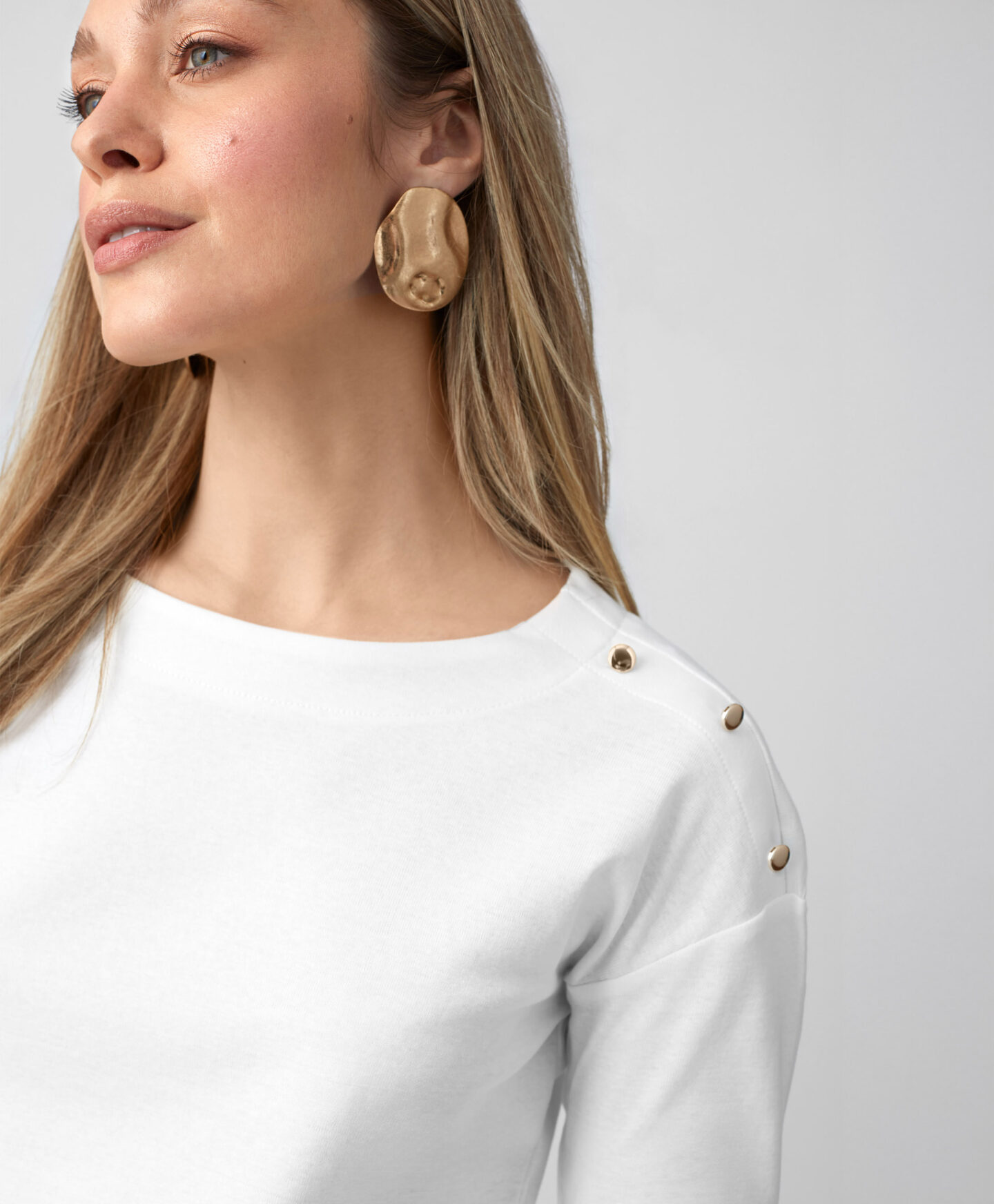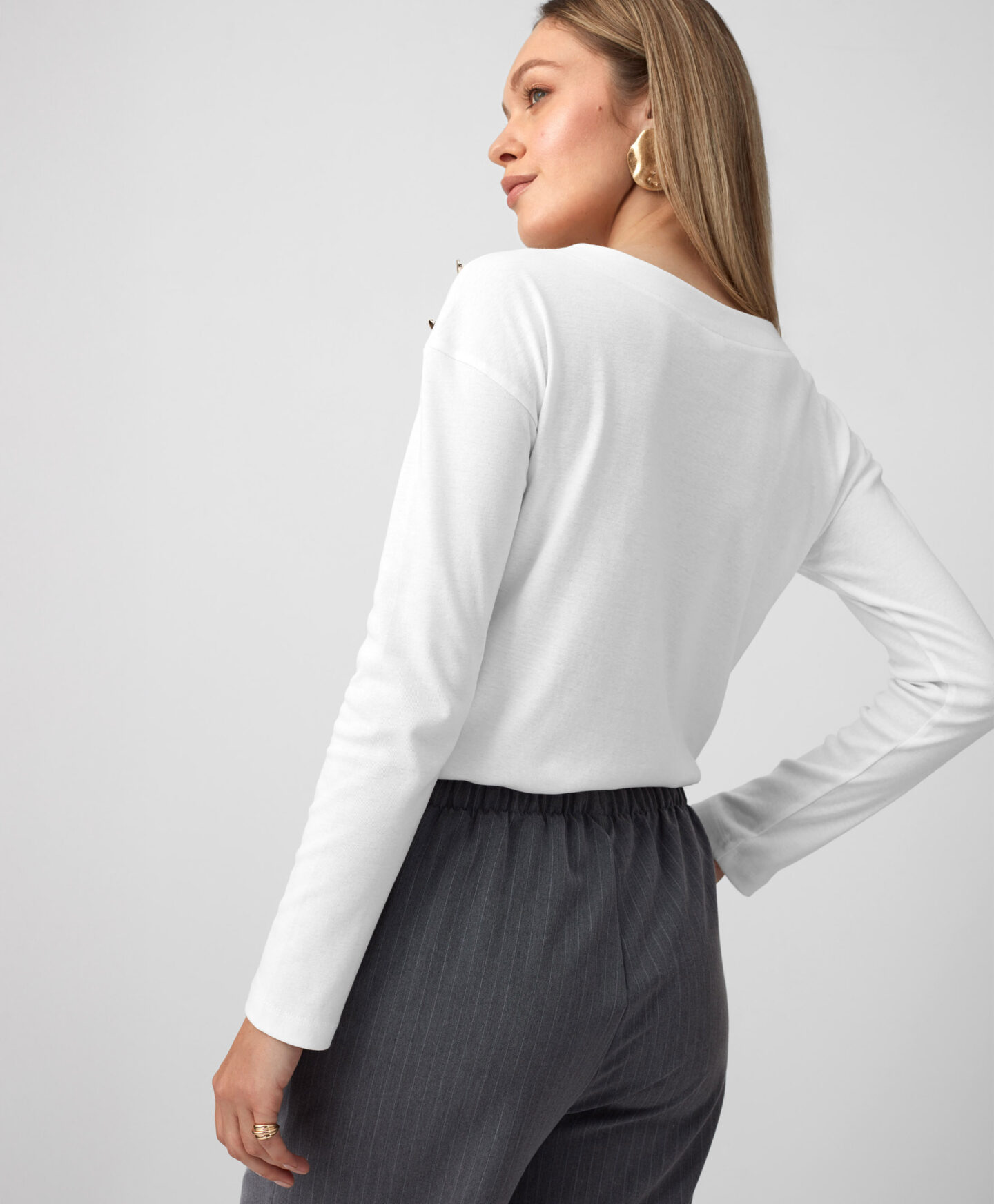 Aggiungi un tocco di stile al tuo guardaroba con questa maglia bianca a righe da donna, realizzata in morbido cotone. Perfetta per le giornate più fresche grazie alle sue maniche lunghe, è la scelta ideale per un look casual e versatile. Disponibile nelle taglie dalla S alla XXL, questa maglia si abbina splendidamente sia con jeans che con gonne, garantendo sempre un comfort impeccabile.