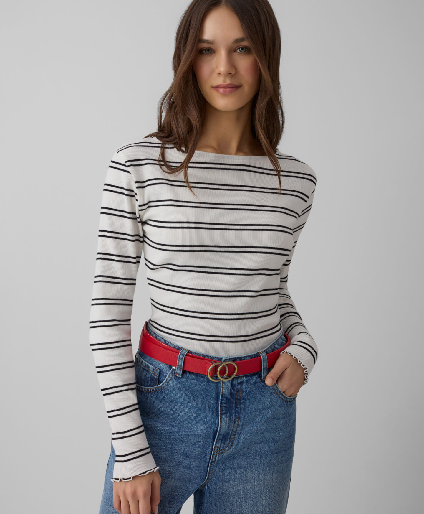 Aggiungi un tocco di freschezza al tuo look con questa maglia bianca a righe da donna, ideale per aggiungere carattere a ogni outfit. Realizzata con un mix di cotone ed elastane, si adatta perfettamente alla silhouette garantendo comfort e libertà di movimento per tutto il giorno. Disponibile in 2 colori, questa maglietta è perfetta sia con i jeans per un look casual che con pantaloni eleganti per occasioni più raffinate.