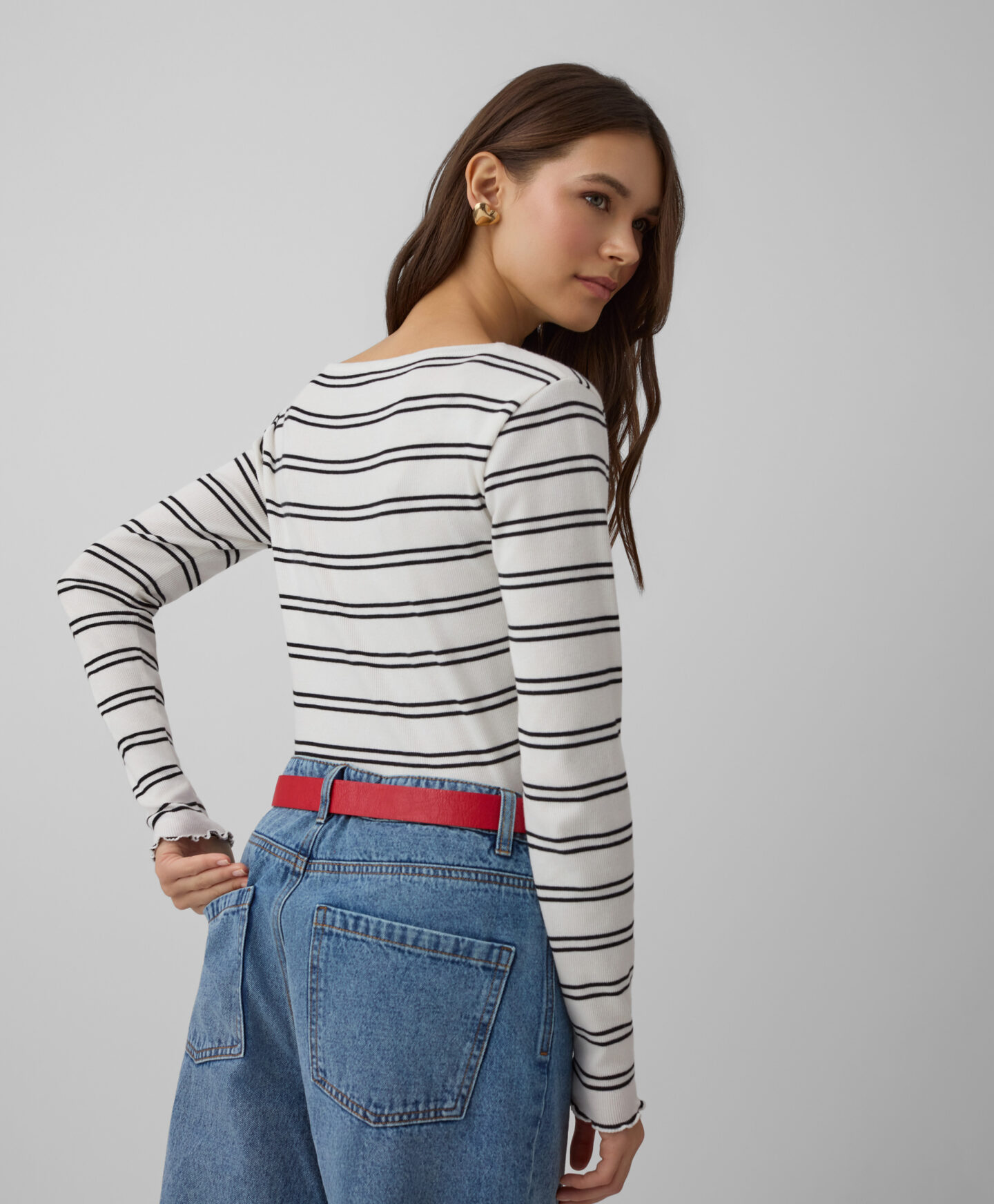 Maglia bianca a righe da donna