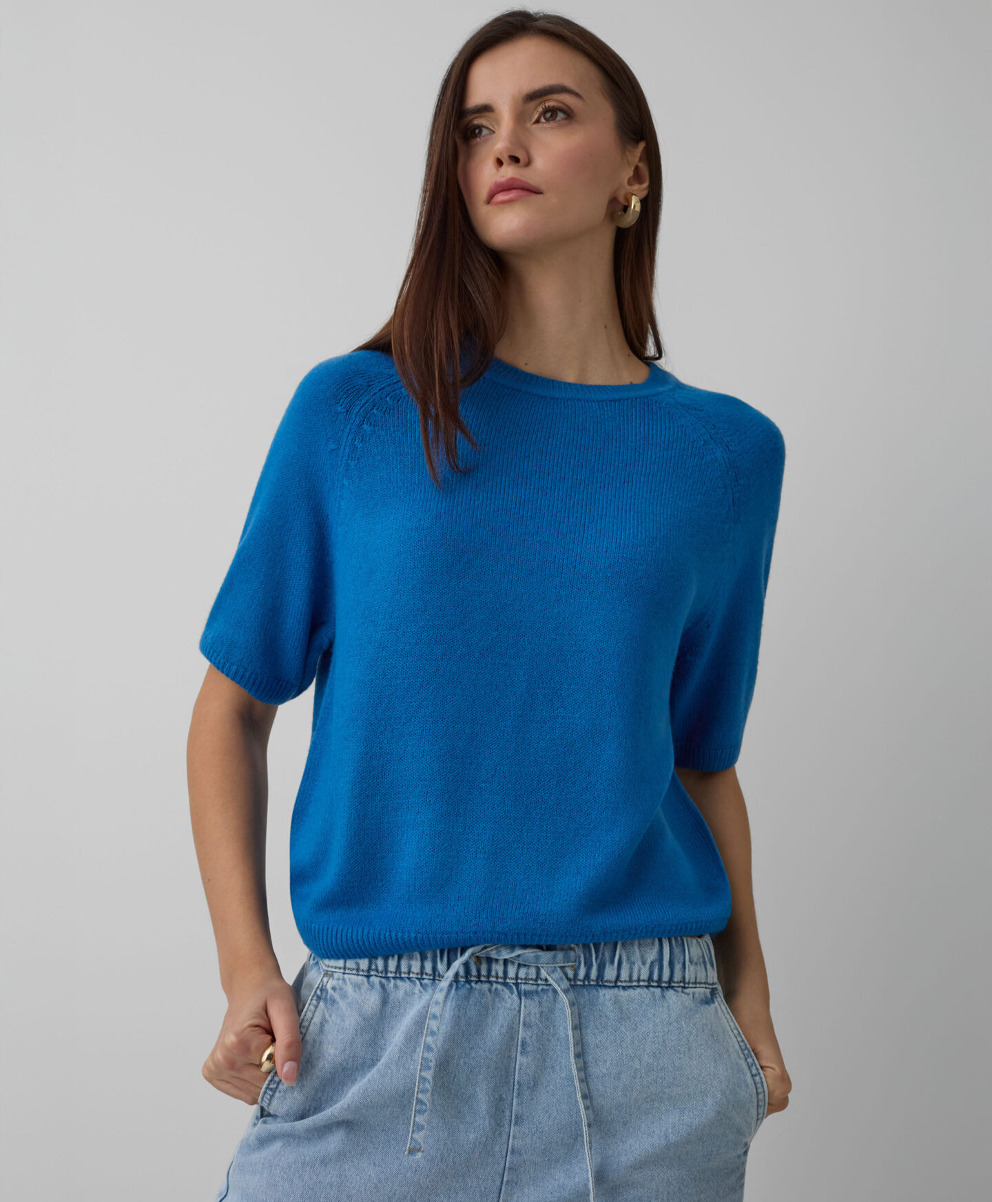Maglia blu manica corta da donna