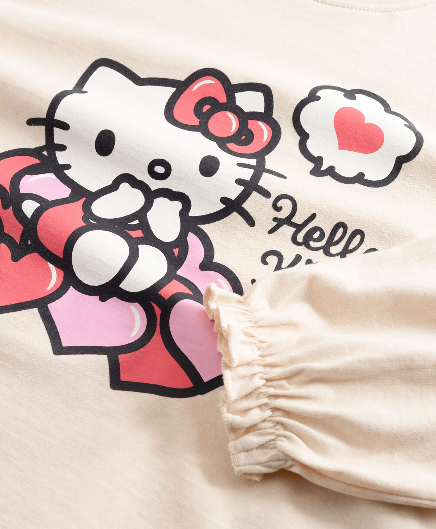 Regala alla tua piccola un tocco di dolcezza con questa maglia di Hello Kitty a maniche lunghe da bambina, realizzata in 100% cotone per garantire morbidezza e comfort tutto il giorno. L’adorabile applicazione sul davanti aggiunge un dettaglio speciale, perfetto per illuminare ogni outfit. Ideale per la scuola, l’asilo o le giornate di gioco, questa maglietta è un must-have per le piccole fan di Hello Kitty!