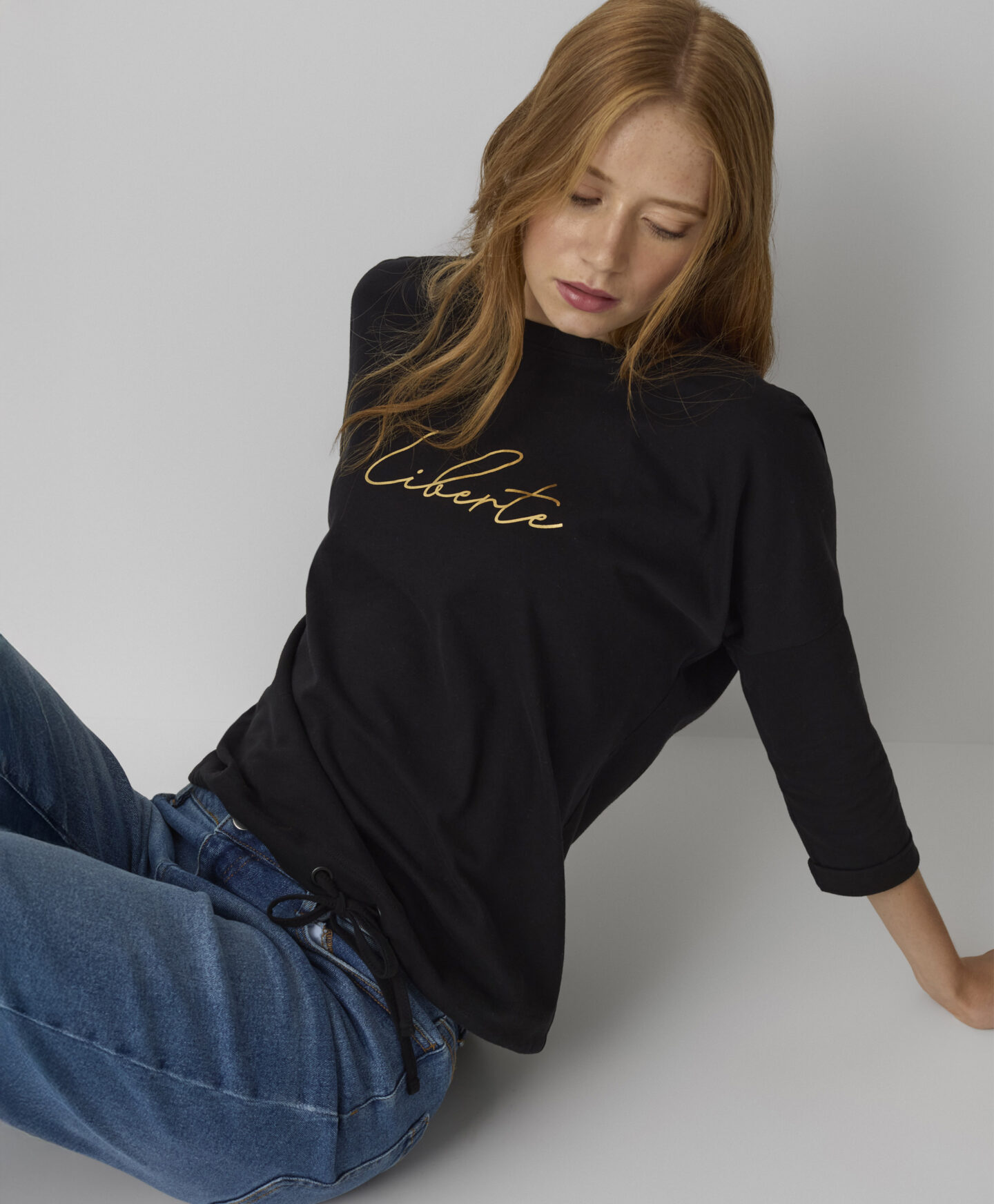 Dai un tocco di stile intramontabile al tuo guardaroba con questa maglia nera da donna in puro cotone, arricchita da un nodo sul davanti che la rende unica. La morbidezza del tessuto garantisce massima traspirabilità e delicatezza sulla pelle, rendendola perfetta per affrontare le giornate più calde senza rinunciare al comfort. Versatile e sempre alla moda, questa maglia si abbina con facilità a jeans, shorts o gonne, offrendoti infinite possibilità per creare look casual o più sofisticati, adatti a ogni occasione.