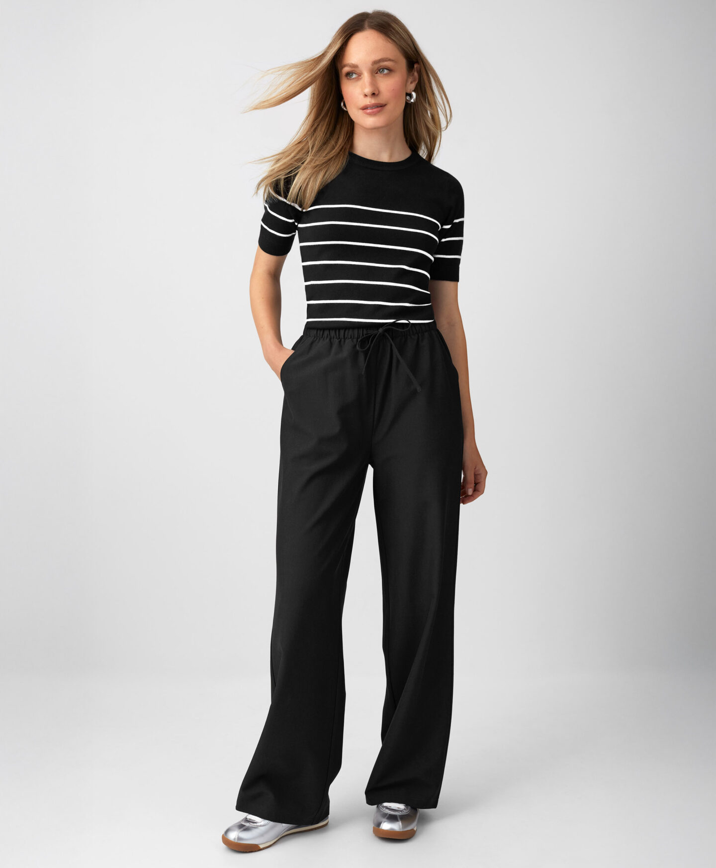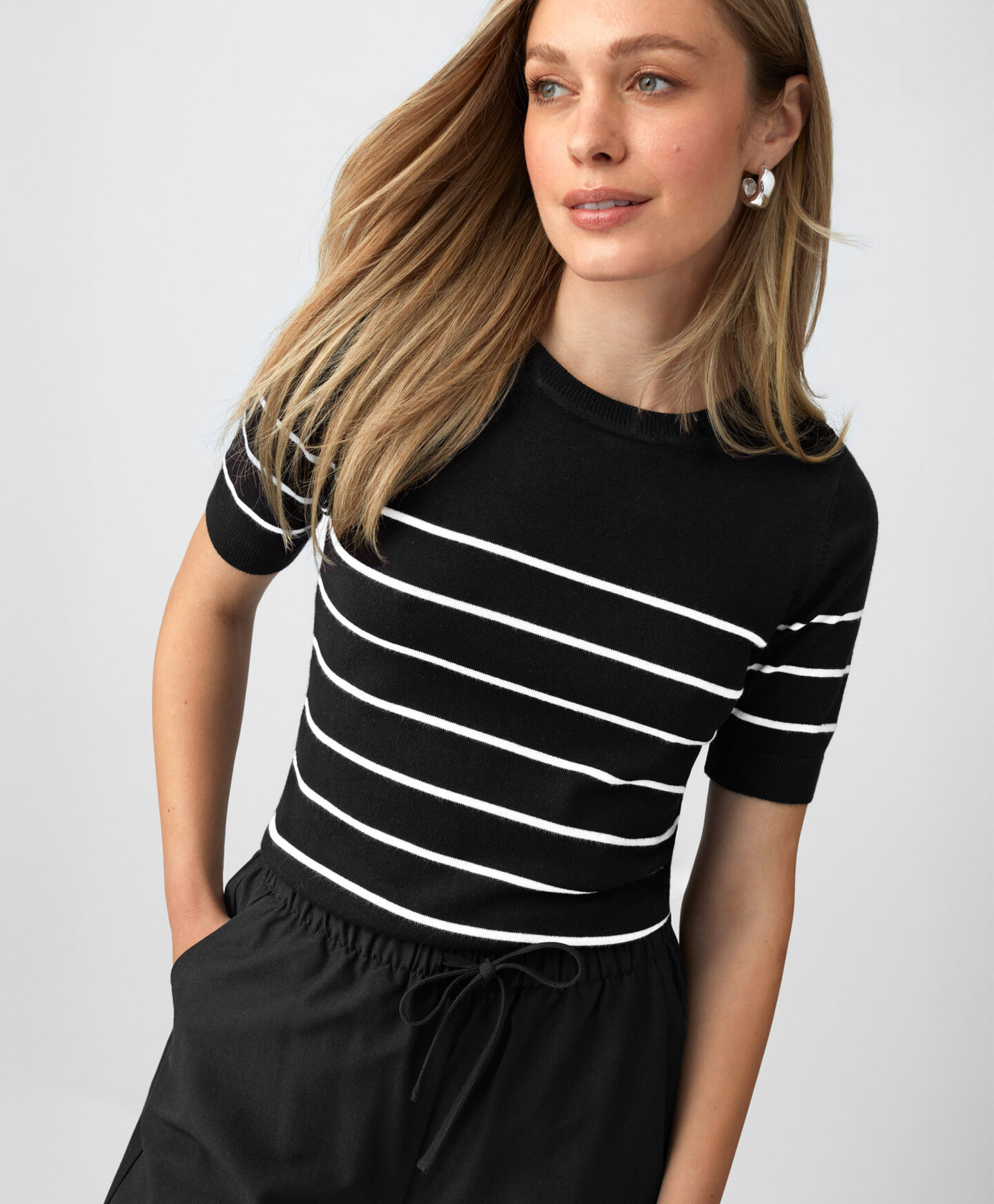 Maglioncino nero a righe da donna