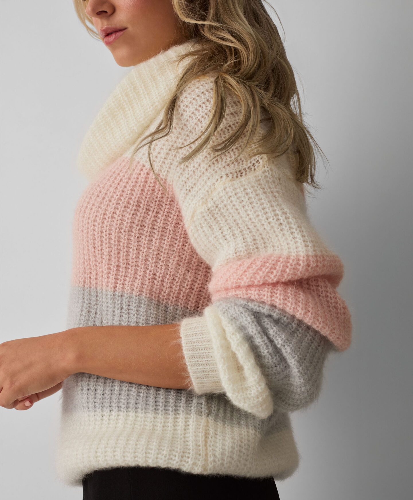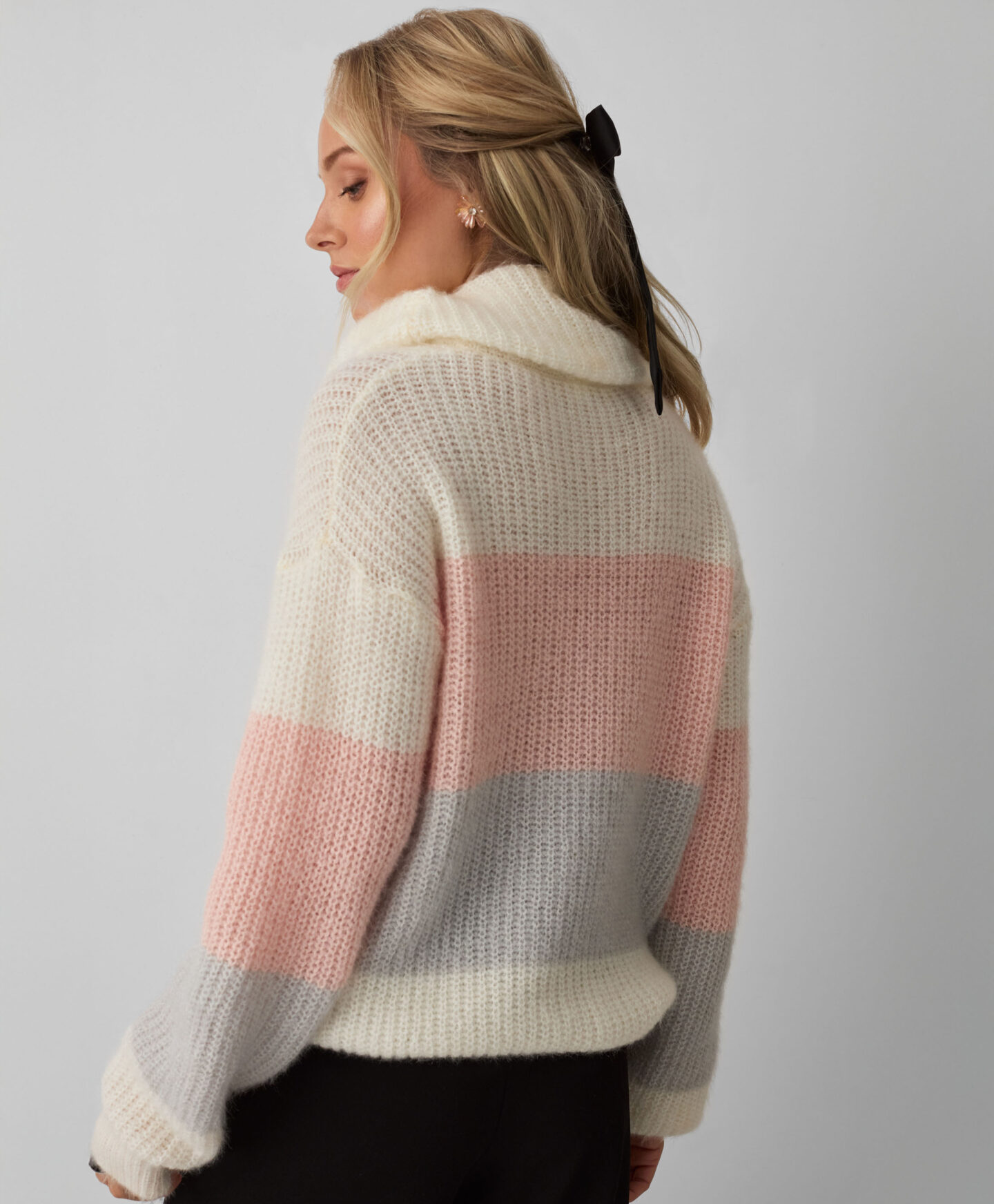 Avvolgiti in una morbida nuvola di calore con questo maglione bianco a righe colorate, pensato per chi non vuole rinunciare a stile e comfort. Le ampie righe dai toni pastello donano un tocco di dolcezza al tuo look, mentre il tessuto soffice e avvolgente ti protegge dal freddo con eleganza. Ideale da abbinare a jeans classici, pantaloni eleganti o a un look più sportivo, questo maglione sarà il protagonista indiscusso dei tuoi outfit autunnali, regalandoti un comfort impareggiabile in ogni occasione.