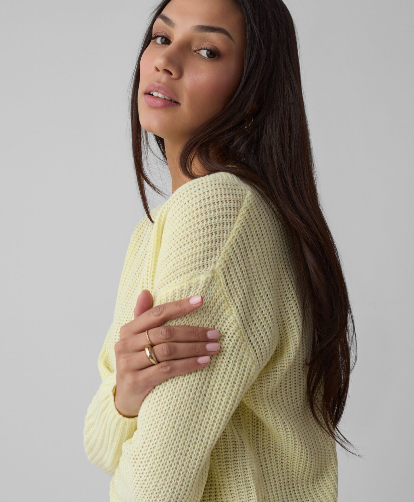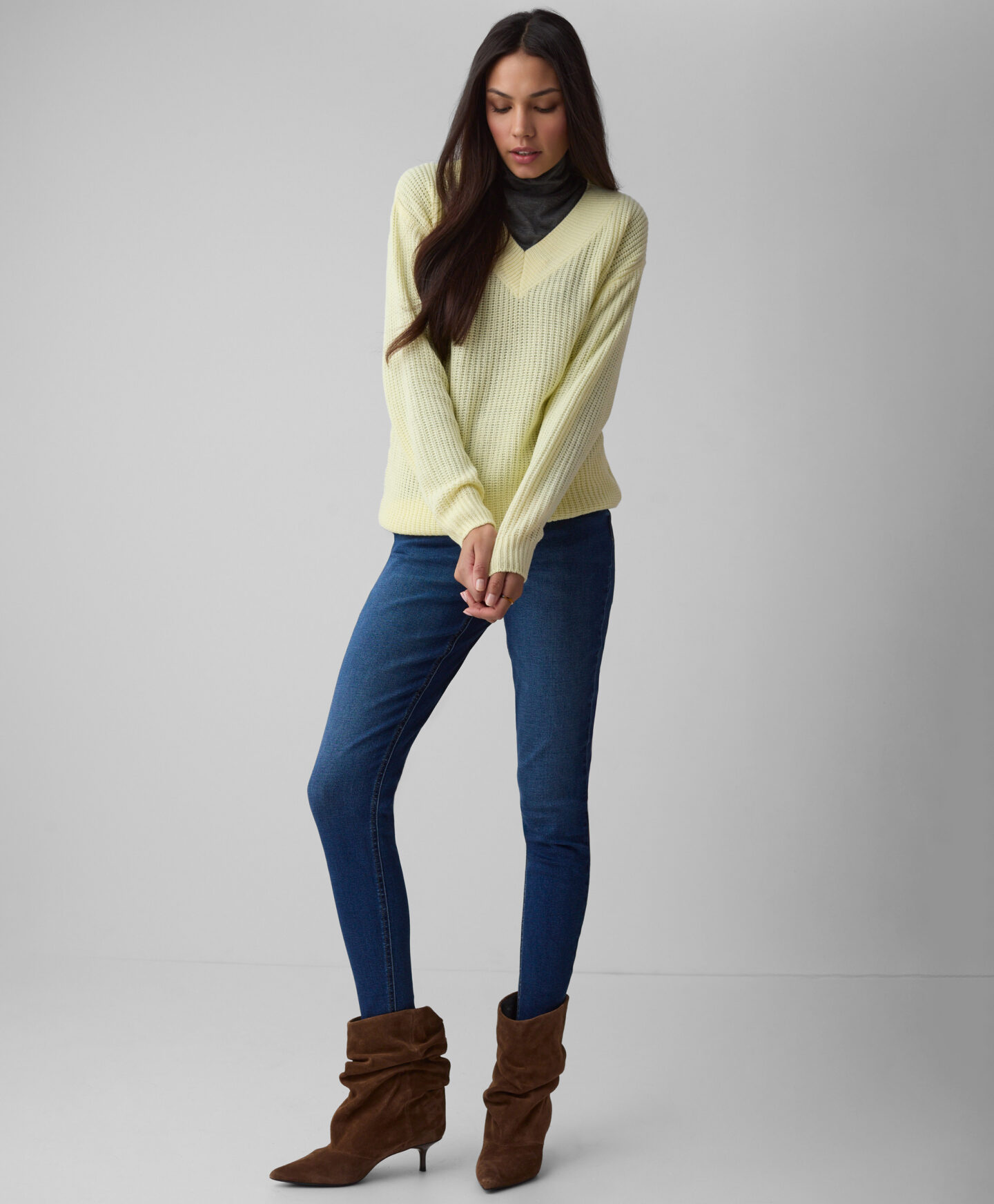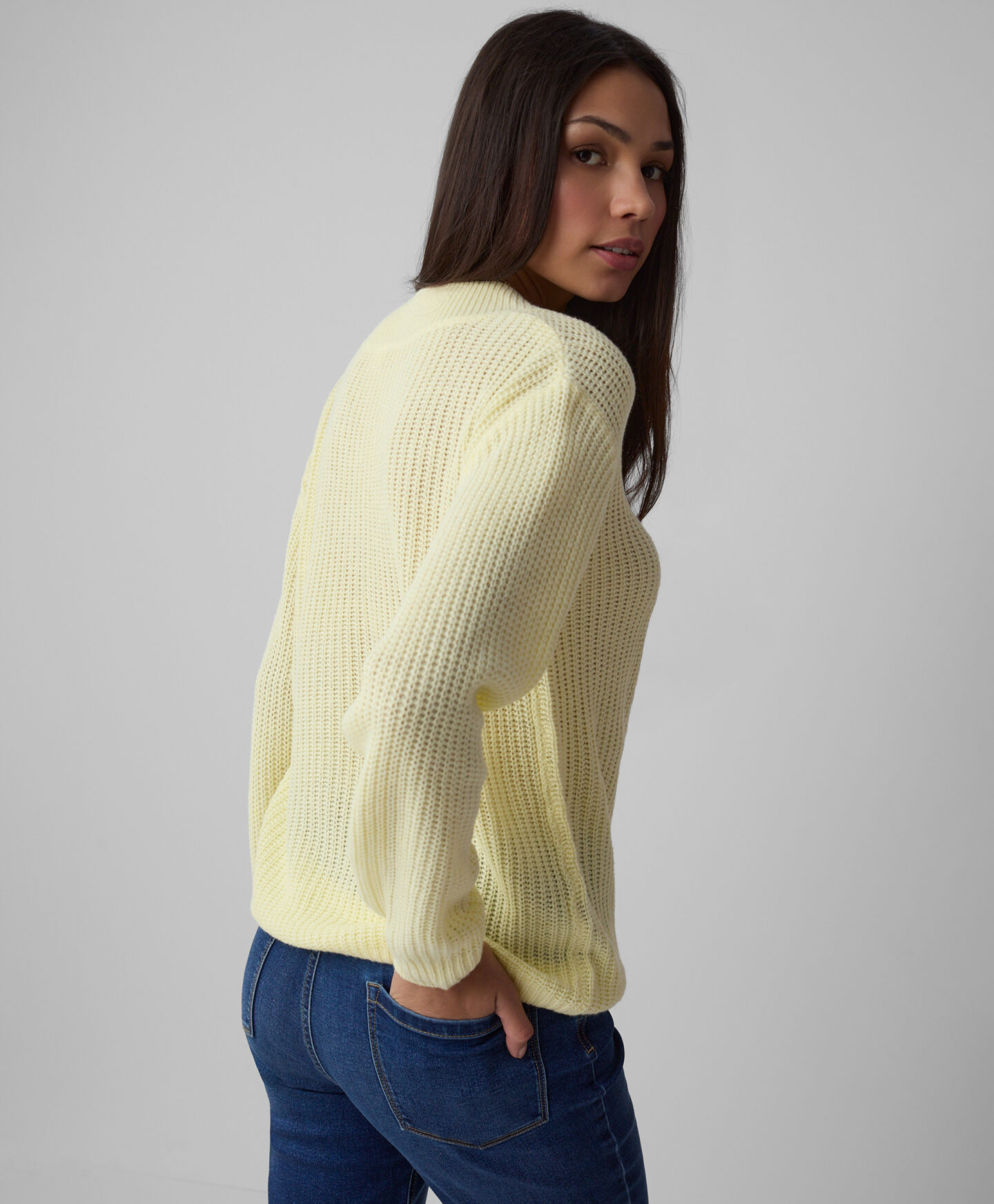 Maglione giallo scollo a V donna