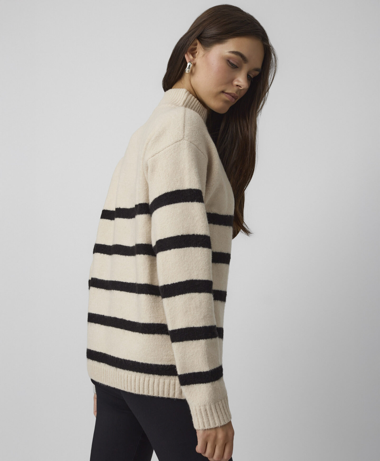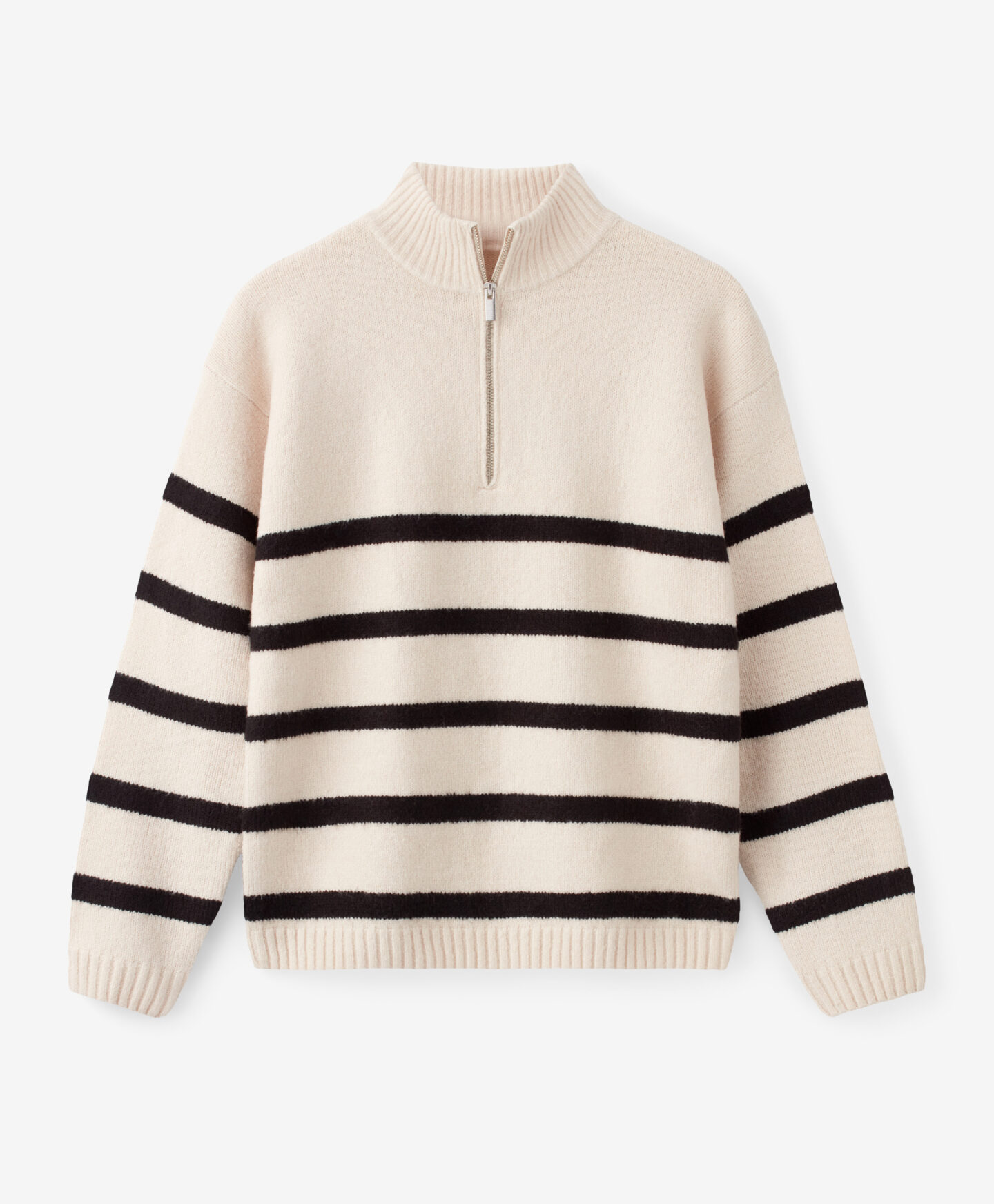 Dona un tocco di raffinatezza al tuo guardaroba autunnale con questo maglione grigio a righe da donna, impreziosito da una zip sul collo che aggiunge un tocco moderno. Realizzato in un tessuto morbido e avvolgente, ti terrà al caldo durante le giornate fresche e si abbinerà facilmente a jeans, gonne o pantaloni eleganti. Questo maglione è un capo versatile che non può mancare nel tuo armadio.