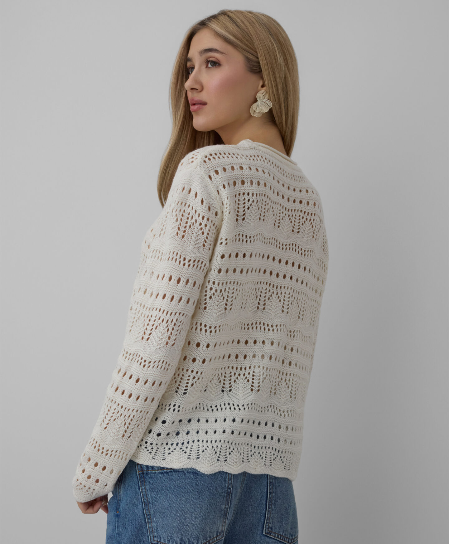Lasciati conquistare dall’eleganza di questo maglione grigio traforato da donna, perfetto per chi ama uno stile romantico e raffinato. Il suo taglio morbido e il tessuto leggero donano un carattere unico, mentre il delicato motivo in pizzo aggiunge un tocco di leggerezza a ogni outfit. Versatile e facile da abbinare, questo maglione si sposa perfettamente sia con jeans che con pantaloni eleganti.