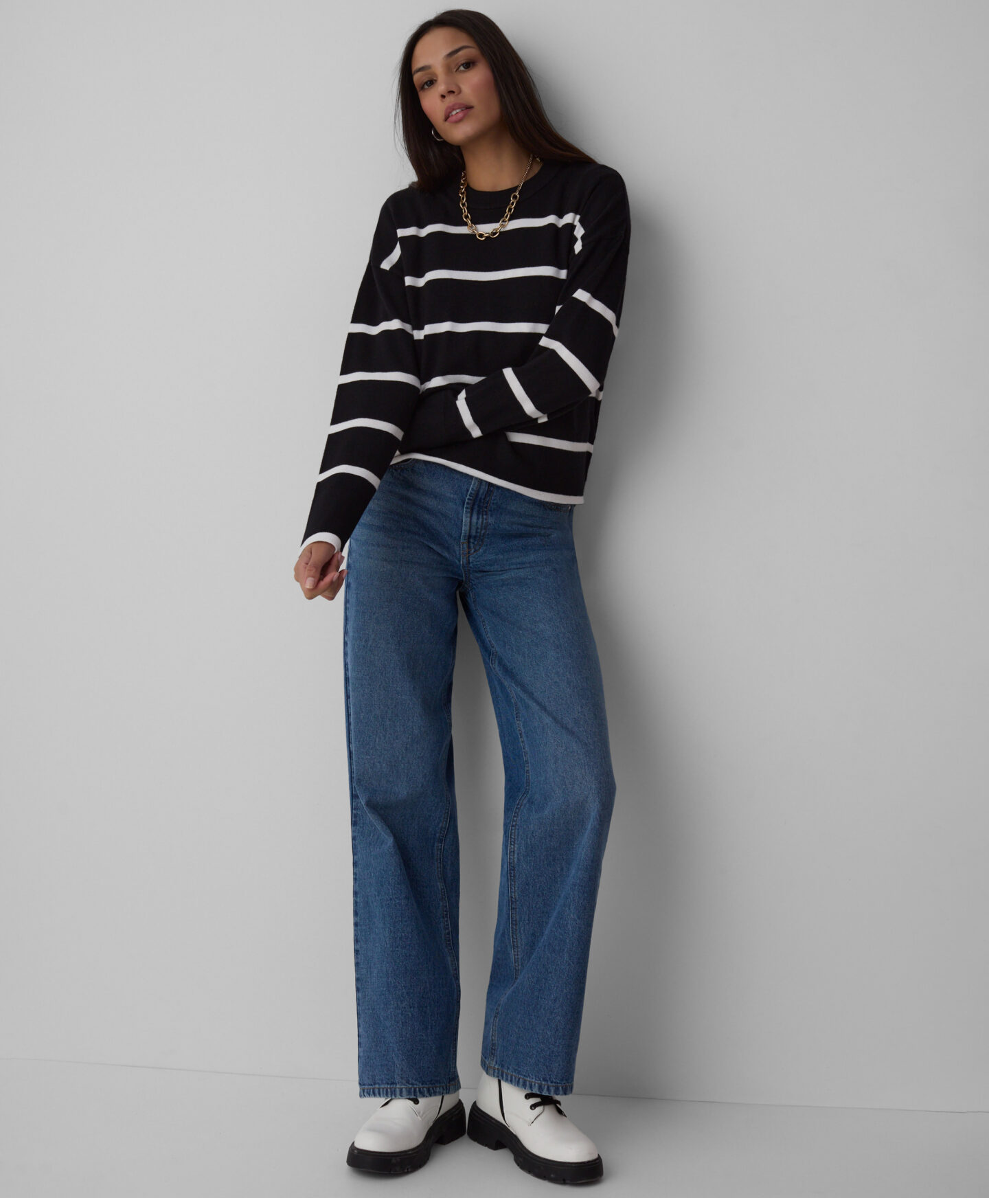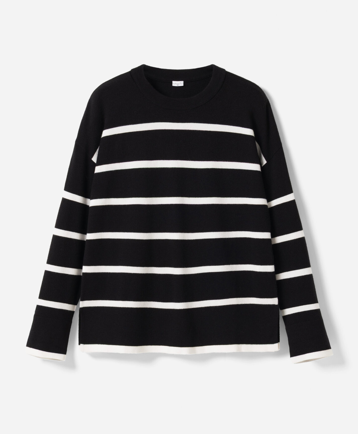 Rendi ogni outfit irresistibile con questo maglione nero a righe da donna, un capo intramontabile che unisce stile e comfort. Realizzato in viscosa, è perfetto per le tue giornate: che tu stia andando in ufficio, uscendo con le amiche o partecipando a un evento più formale, questo maglione si abbina facilmente a jeans o pantaloni eleganti. Aggiungi i tuoi accessori preferiti e lascia che il motivo a righe classico dia un tocco di raffinatezza al tuo look.