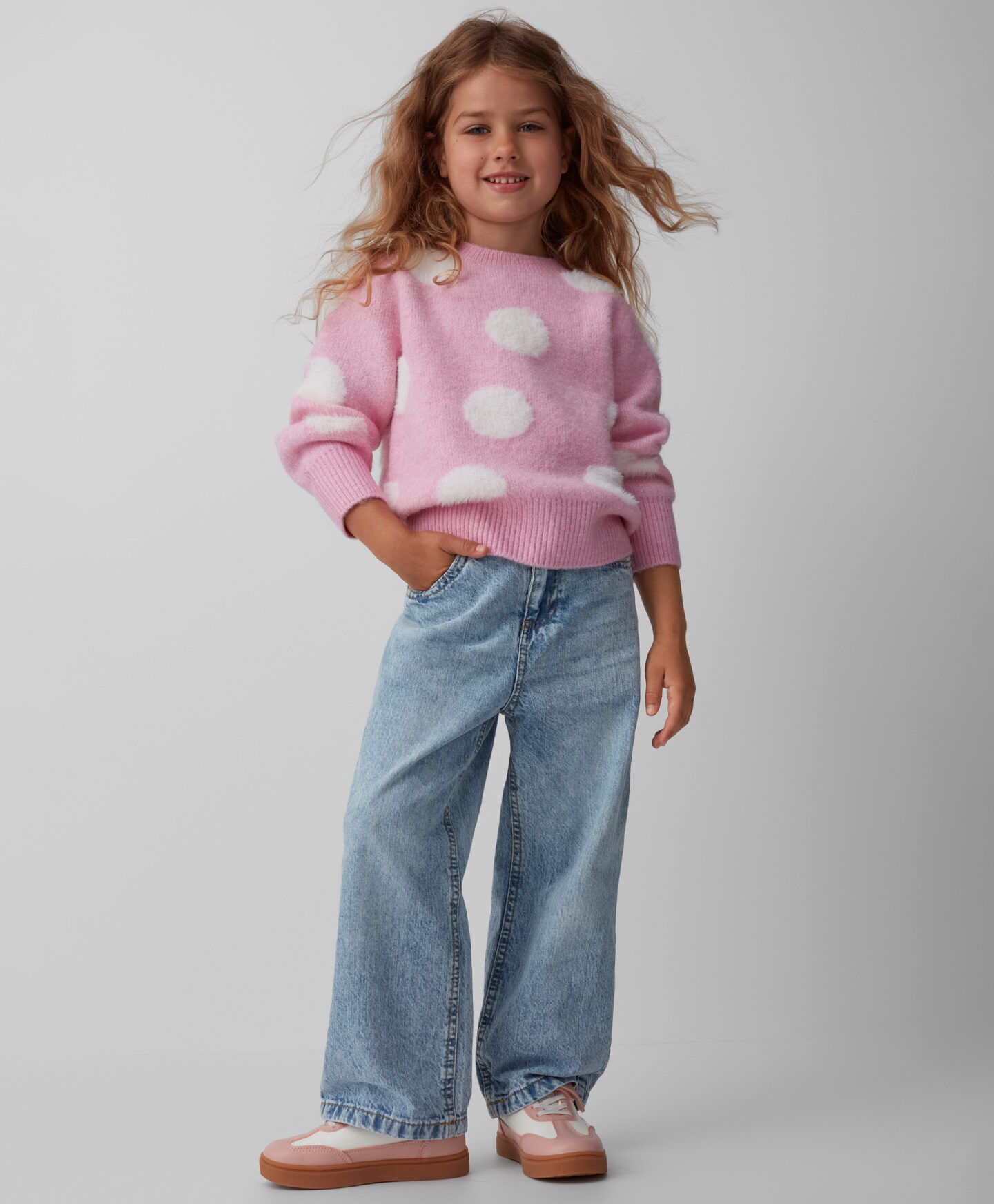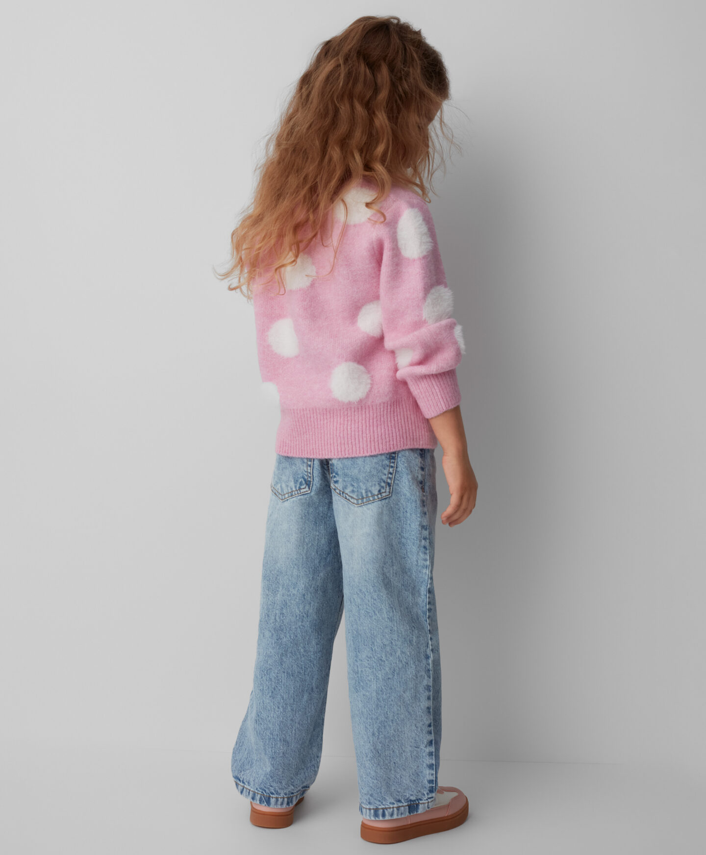 Fai brillare le giornate della tua piccola con questo maglione rosa a pois da bambina, pensato per le amanti dello stile che non vogliono rinunciare al comfort. Realizzato in materiale morbido e delicato sulla pelle, è la scelta perfetta per scaldare la tua piccola durante le giornate più fredde. Abbinalo a jeans, leggings o a una gonna per un look da sfoggiare a scuola che unisce dolcezza e un tocco di eleganza.