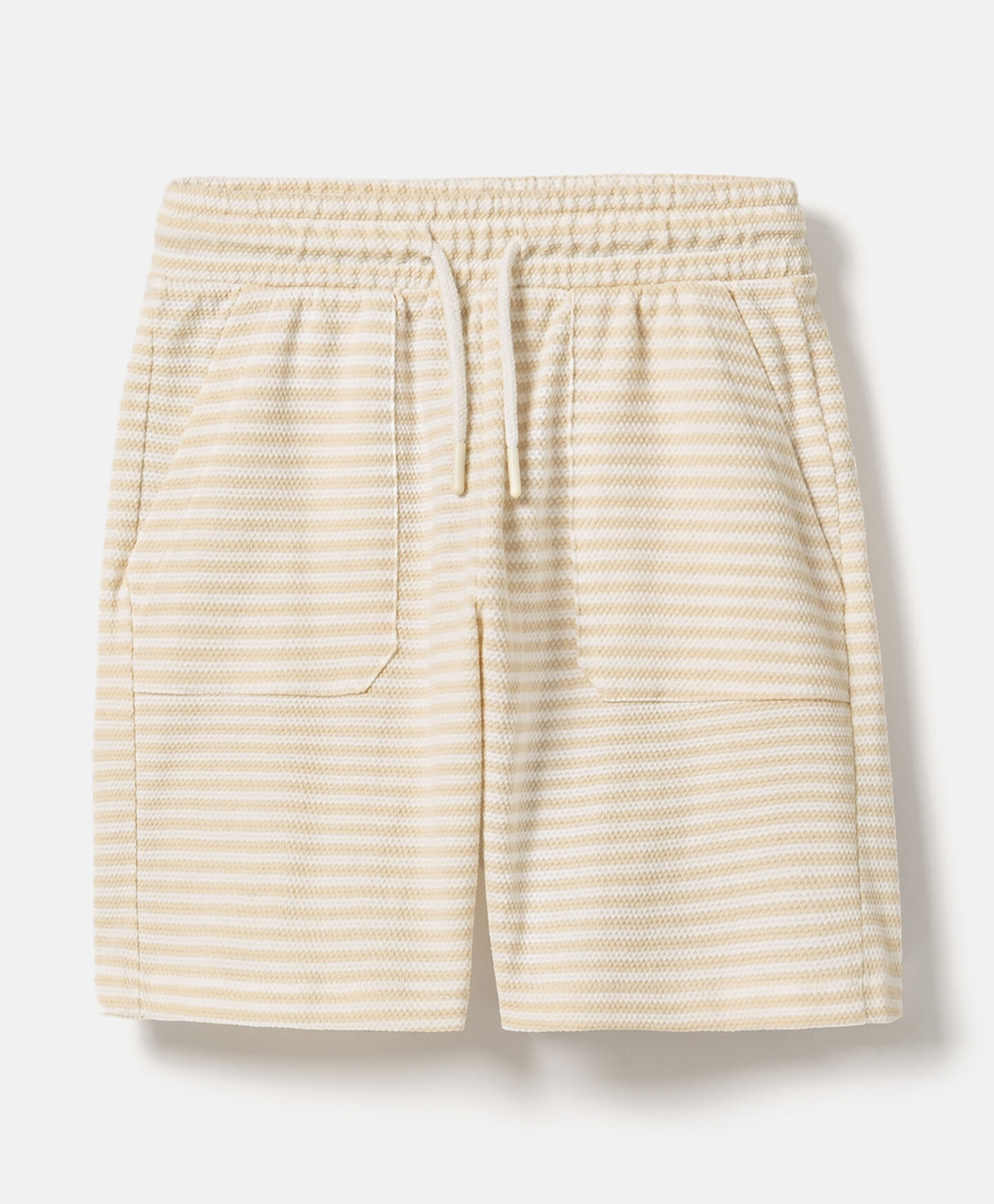 Regala al tuo piccolo esploratore il massimo del comfort con questi pantaloncini beige da bambino in 100% cotone. Perfetti per le avventure all’aria aperta, le escursioni o le giornate di gioco, uniscono stile e funzionalità. La vita elasticizzata con coulisse regolabile garantisce una vestibilità perfetta, mentre le ampie tasche sono ideali per riporre piccoli oggetti. Le righe bianche aggiungono un tocco fresco, rendendo questi pantaloncini un capo versatile che si abbina facilmente a qualsiasi maglietta.