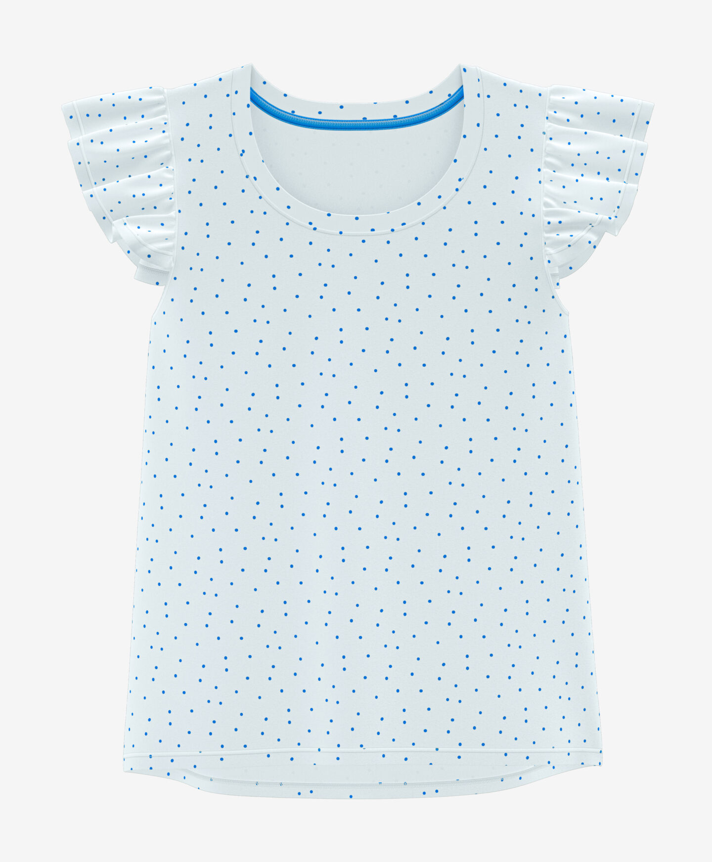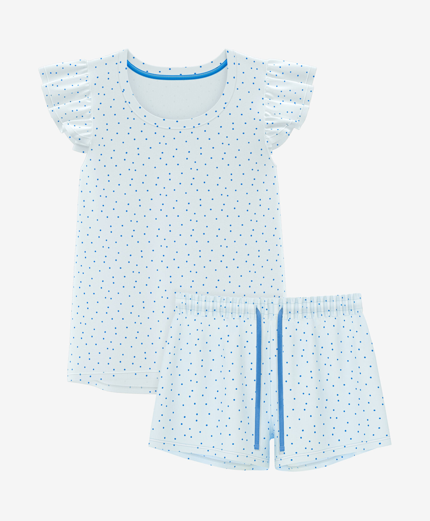 Concediti il massimo comfort con questo pigiama a pois blu da donna, realizzato in 100% cotone e pensato per coccolarti durante la notte. Il tessuto morbido e traspirante accarezza delicatamente la pelle, mentre l’affascinante fantasia a pois e le romantiche ruches sulle maniche aggiungono un tocco di eleganza. Disponibile nelle taglie dalla S alla XL, questo pigiama è perfetto per chi cerca stile e comodità.