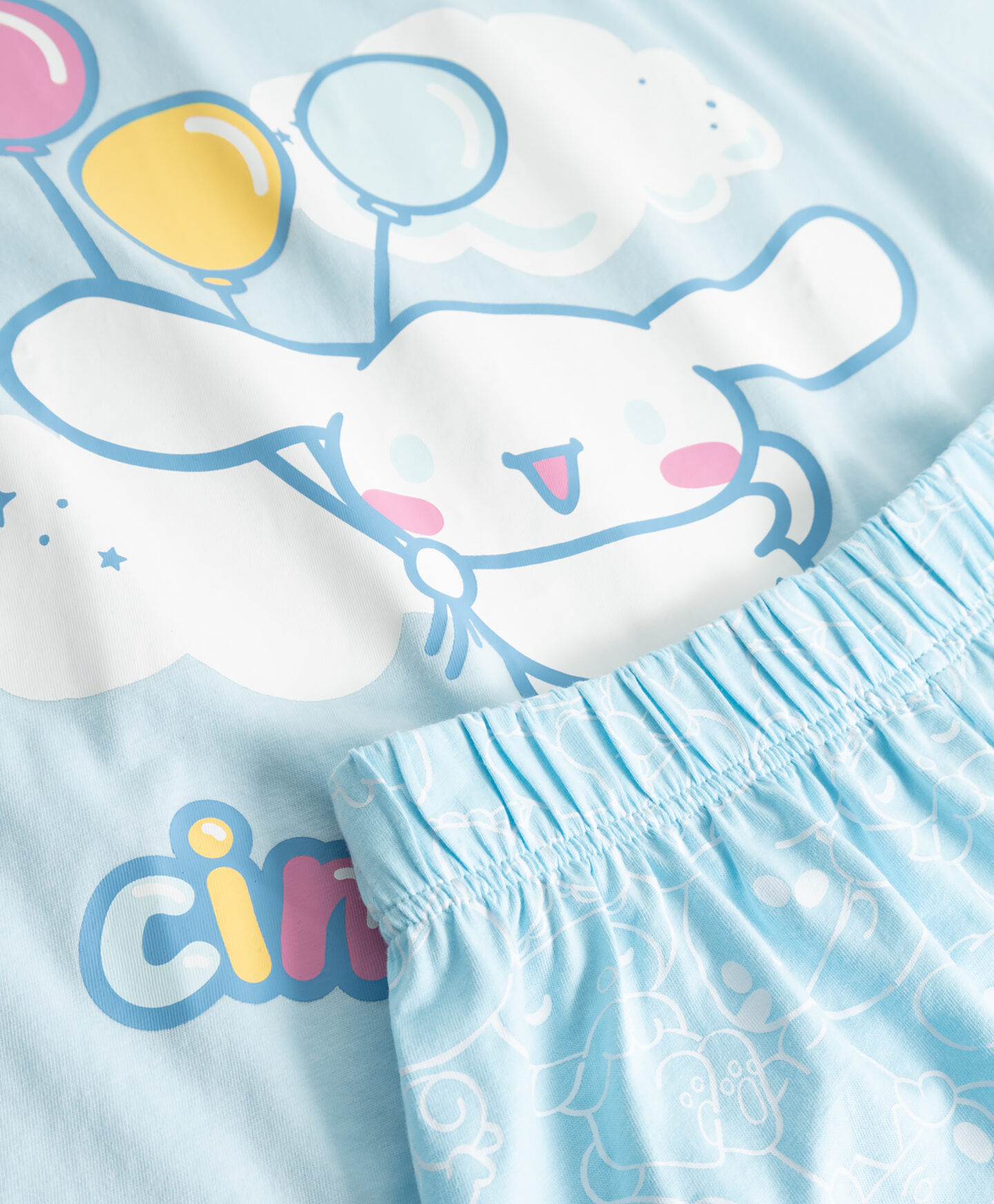 Regala alla tua fan di Cinnamoroll notti serene con questo pigiama azzurro da ragazza in 100% cotone. Composto da una morbida t-shirt e pantaloncini, è perfetto per le serate più calde grazie al tessuto delicato sulla pelle e al taglio comodo che garantisce libertà di movimento.
