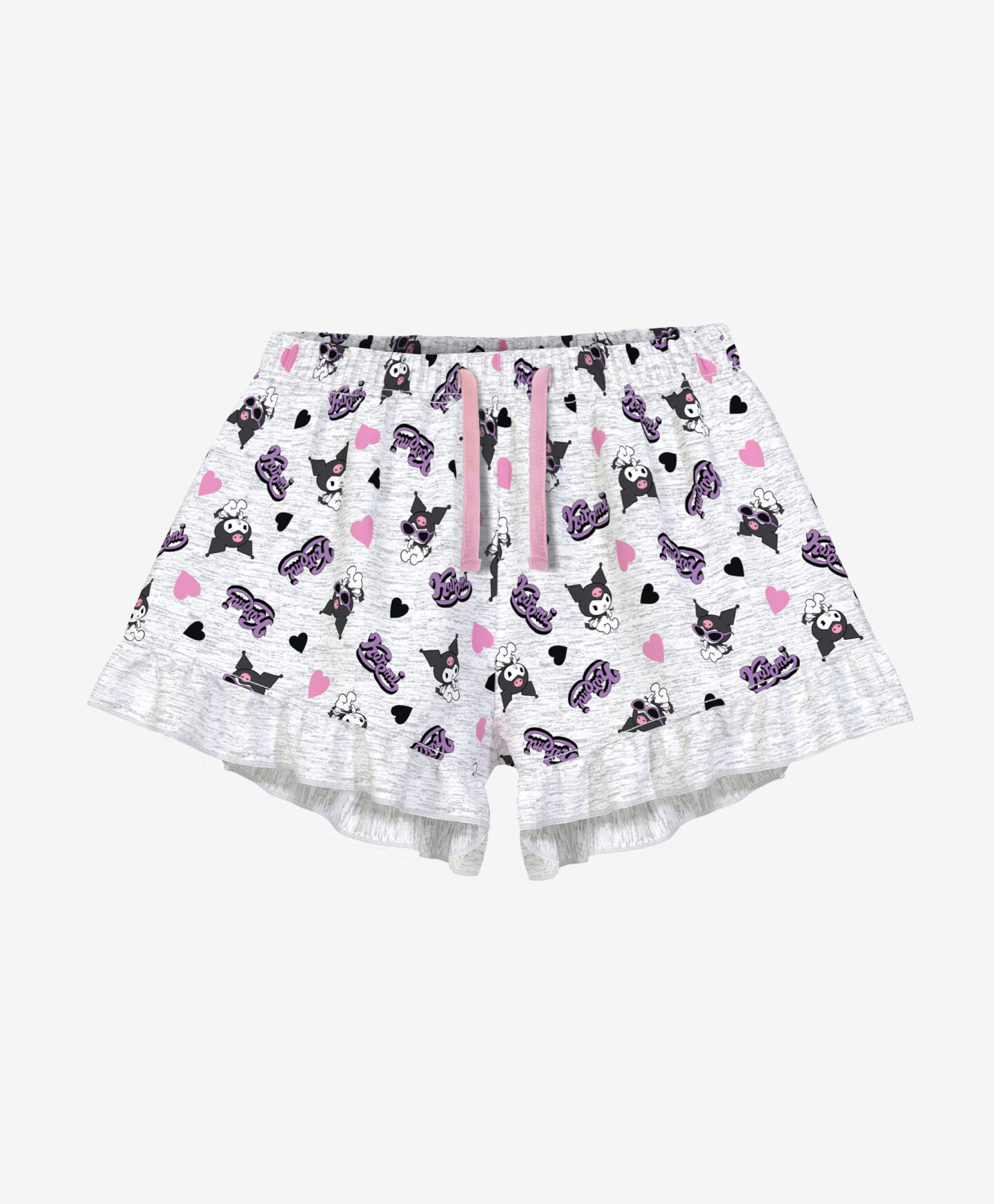 Regala a tua figlia dei bellissimi sogni con questo pigiama di Kuromi in 100% cotone. Questo set incantevole, composto da una maglietta a maniche corte e shorts rifiniti con un adorabile volant, avvolgerà delicatamente la pelle. Il pigiama si distingue per il suo bellissimo motivo e il tessuto morbido. Realizzato nelle tonalità del rosa e del grigio, è perfetto per le giovani fan di Kuromi.