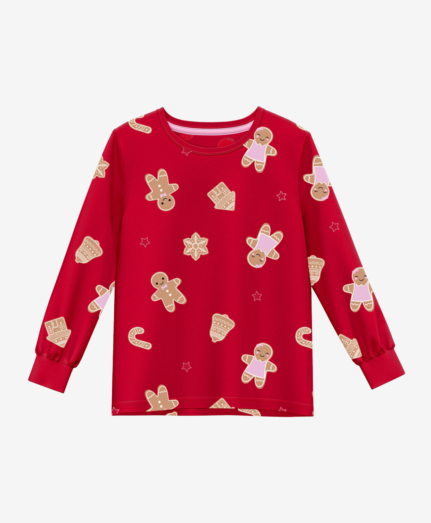 Fai sognare la tua piccola con questo delizioso pigiama a tema pan di zenzero, perfetto per le serate invernali. Composto da una maglietta a maniche lunghe e un pantalone comodo, questo set in morbido cotone al 100% avvolge la pelle con dolcezza, garantendo calore e comfort per notti tranquille. Il design festoso e allegro trasformerà ogni momento prima della nanna in un’atmosfera magica, rendendo il riposo ancora più speciale.