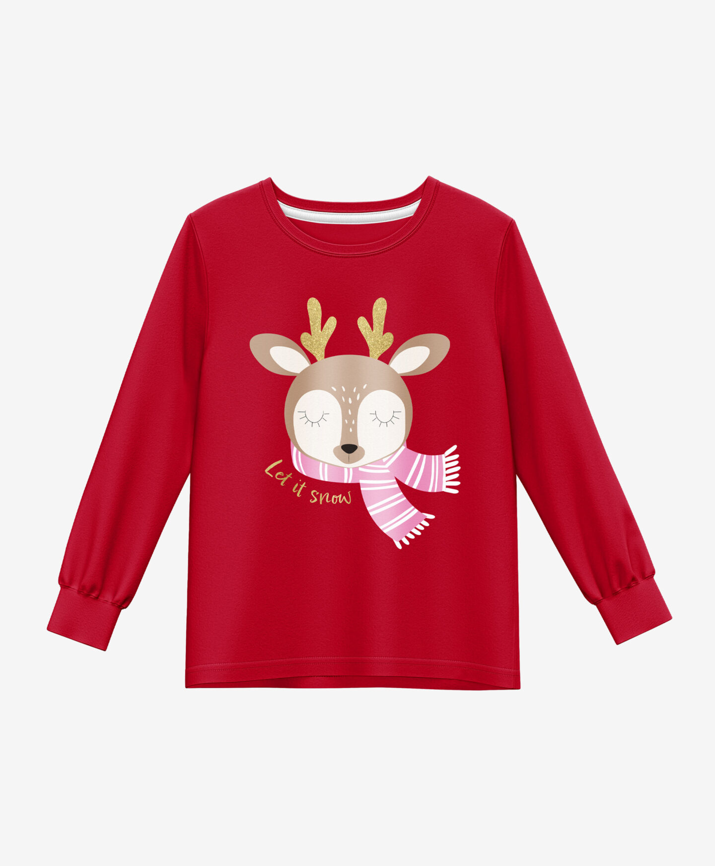Fai sognare la tua piccola con questo pigiama natalizio a tema renna, pensato per avvolgerla in morbidezza durante le fredde serate invernali. Realizzato in 100% cotone, questo set da notte con maglia a maniche lunghe e pantaloni garantisce il massimo comfort e calore, mentre il tenero motivo con la renna porta tutta la magia del Natale nel suo guardaroba. Ideale per serate in famiglia tra relax e festa, questo pigiama renderà ancora più speciali i momenti prima della nanna.